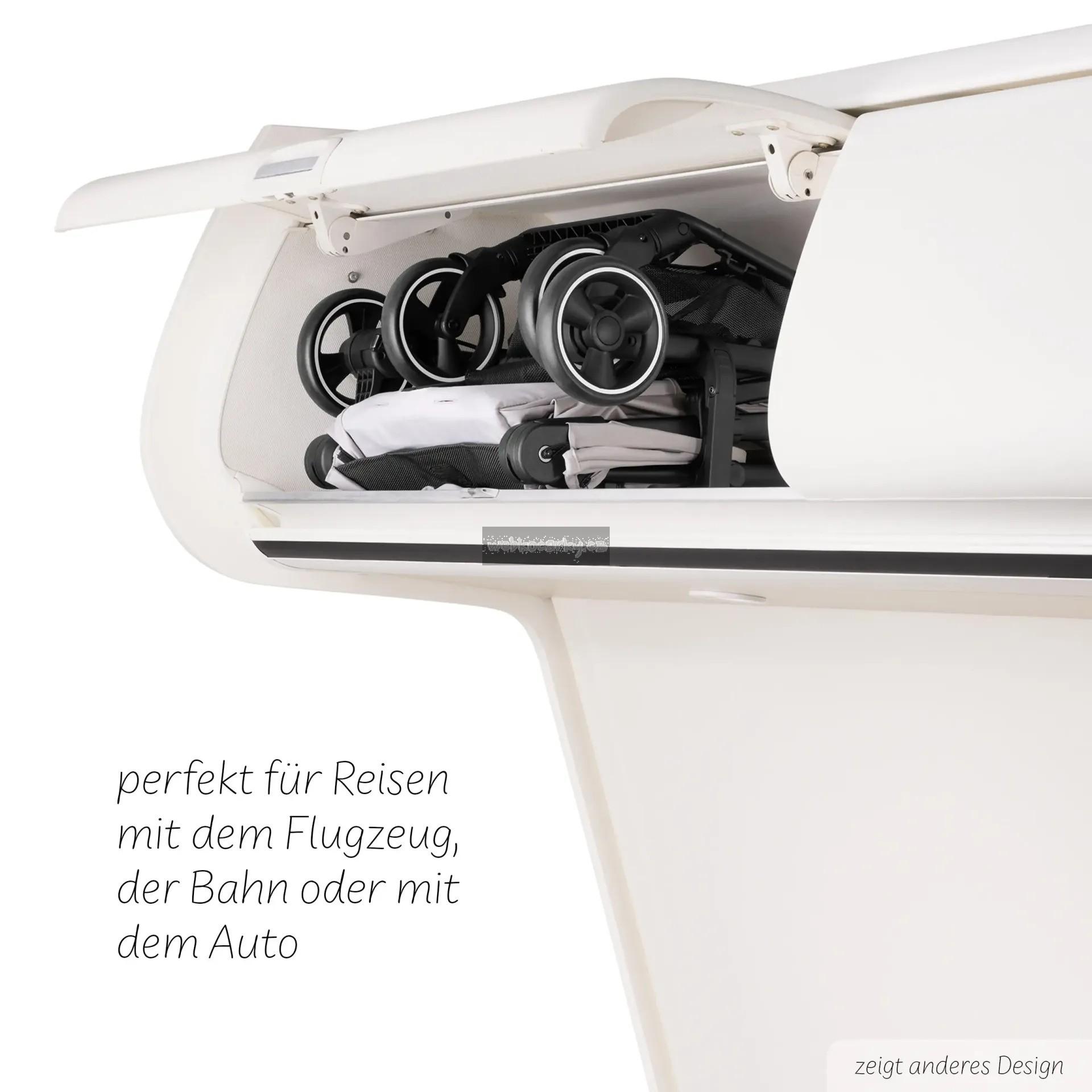 Náš cestovní kočárek Ping 3 Trekking je kompaktní a lze jej vzít do letadla jako příruční zavazadlo. Maximální povolená velikost příručního zavazadla se však může lišit v závislosti na letecké společnosti. Před cestou si proto prosím ověřte aktuální rozměry příručního zavazadla a pokyny vaší letecké společnosti, abyste se ujistili, že kočárek splňuje požadavky.