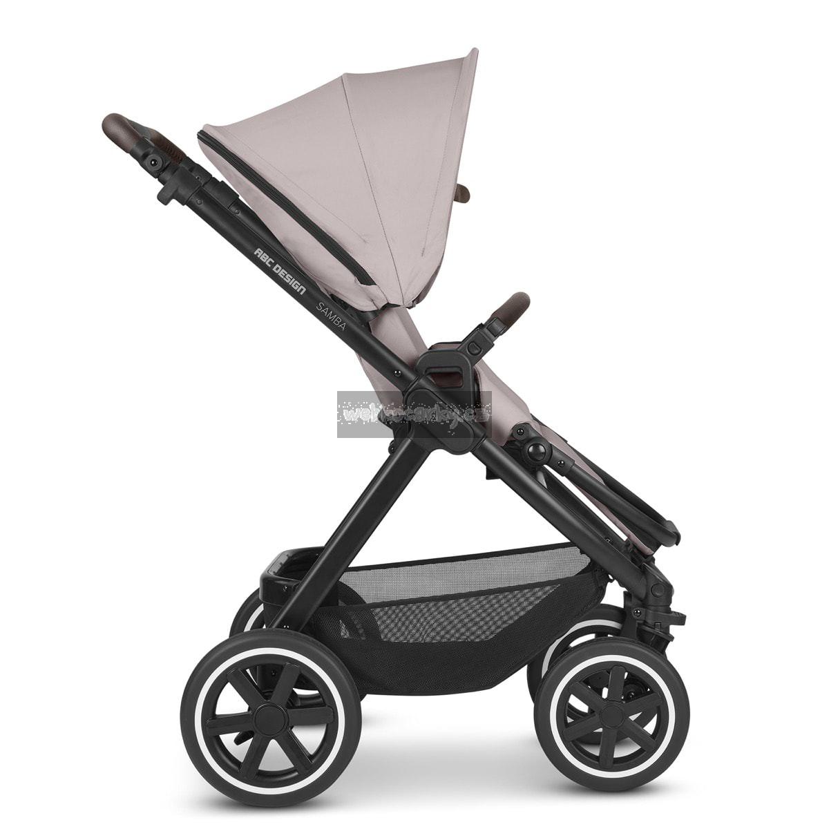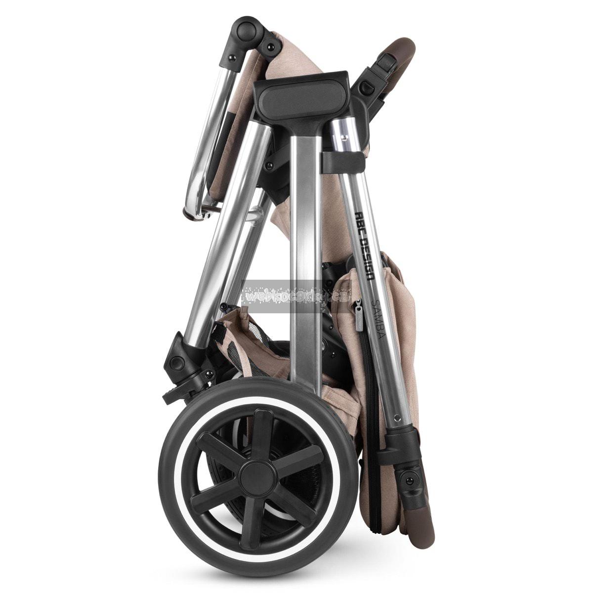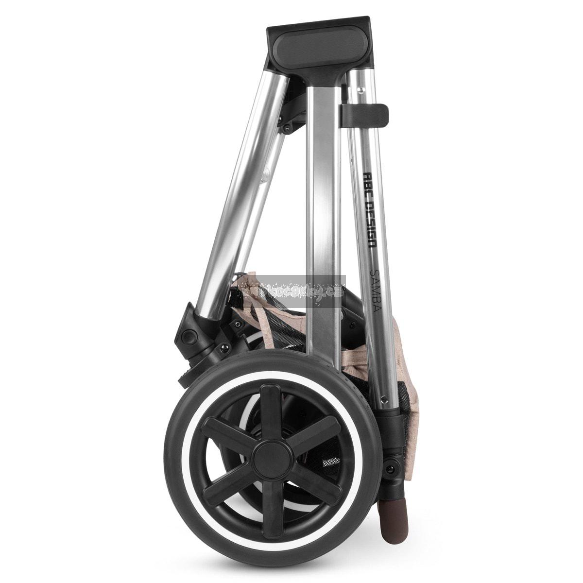 Ať už na chodnících ve městě, v parku nebo mimo ulice, váš kompaktní ABC Design kočárek Samba zvládne jakýkoli povrch. Vysoce kvalitní kuličková ložiska, integrované odpružení a kolečka se vzduchovou komorou bez defektu nabízejí vám i vašemu dítěti maximální pohodlí a super hladkou jízdu. Sportovní nástavba, se kterou je kočárek dodáván, lze jediným kliknutím umístit na rám a poté, co se váš malý průzkumník unaví objevováním světa, můžete nastavit opěrku zad a nohou tak, aby si mohl odpočinout podle potřeby. Přizpůsobte si jej svým potřebám: výšku rukojeti lze snadno upravit tak, aby vám vyhovovala. Chytré: parkovací brzda je umístěna přímo na pravém zadním kole, takže není žádná zadní náprava. To šetří váhu a prostor a zároveň usnadňuje tlačení kočárku. Ke kočárku Samba je k dispozici také volitelná korbička, takže si svůj malý poklad můžete vzít s sebou od narození. A pokud je třeba kočárek převážet, Samba se složí do kompaktních rozměrů, takže zabere málo místa v kufru vašeho auta a můžete si ji bez problémů vzít s sebou do autobusu nebo vlaku. Pokud spěcháte, můžete jej dokonce rychle složit s nasazenou sportovní nástavbou – bez ohledu na to, zda je otočeno dozadu nebo dopředu. Dobře promyšlený systém: adaptéry jsou k dispozici jako volitelný doplněk, takže můžete snadno připojit svou dětskou autosedačku ke kočárku a přeměnit ji na cestovní systém. S integrovaným univerzálním fixním držákem ABC Design máte na jedno kliknutí na kočárku místo pro uložení veškerého příslušenství, jako je taška na pleny, držák nápojů nebo světlo. Díky parkovací brzdě, 5bodovému systému pásů, přepravnímu zámku a odnímatelným kolečkům budete s tímto kočárkem klouzat po kopcích a údolích v optimální bezpečnosti, ať už vás vaše dobrodružství zavede kamkoli.