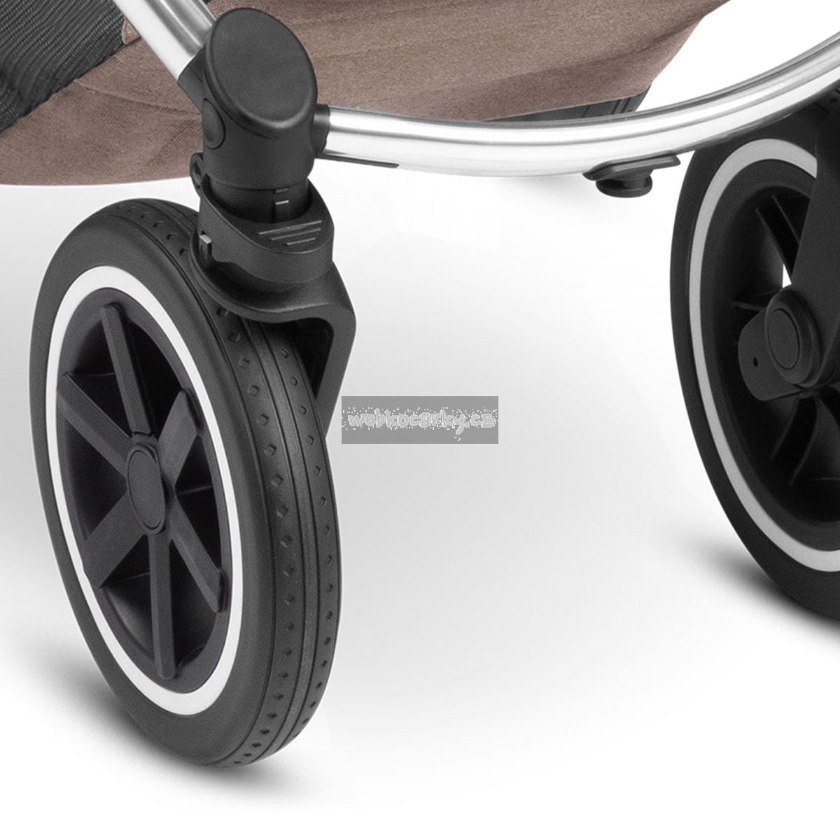 - Malý a ovladatelný kočárek do každého terénu s velkými koly se vzduchovými komorami a nástavcem na sportovní kočárek