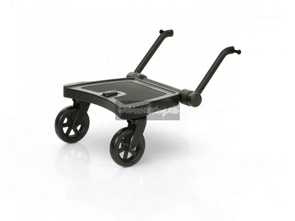 Kiddie Ride On dá vašim dětem zcela nový zážitek z jízdy ve stoje a postará se o spoustu zábavy pro starší sourozence. Díky důmyslnému upevňovacímu systému lze stupátko snadno a rychle připojit ke kočárku. Stupátko Kiddie Ride On se dále pyšní volitelným sedátkem, na kterém si může dítě za jízdy odpočinout. Dle individuálních potřeb dítěte lze u stupátka nastavit délku, šířku a sklon. Pro optimální pohodlí při jízdě jsou kolečka stupátka odpružená.