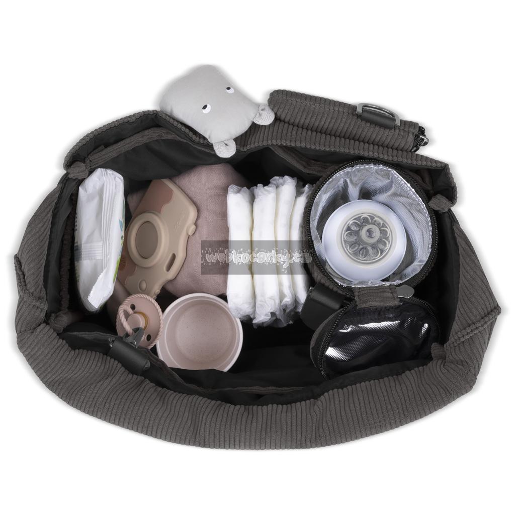 Zvláštností přebalovací tašky Urban jsou četné odkládací přihrádky uvnitř i vně. Praktické magnetické zapínání na přední klopě umožňuje rychlý a snadný přístup k vašim nejdůležitějším věcem. Prostorná hlavní přihrádka nabízí prostor pro plenky, lahve a vše, co potřebujete pro vaše miminko. Menší přihrádky jsou ideální pro bezpečné uložení různých drobností. Vše tak zůstane na svém místě a je vždy rychle po ruce. Příslušenství přebalovací tašky Urban zahrnuje hygienickou přebalovací podložku, zateplenou tašku na láhev, tašku na malé nezbytnosti a zapínání na přebalovací tašku. Široký, výškově nastavitelný ramenní popruh z veganské kůže ( délka 66 až 137 cm) zajišťuje maximální pohodlí.