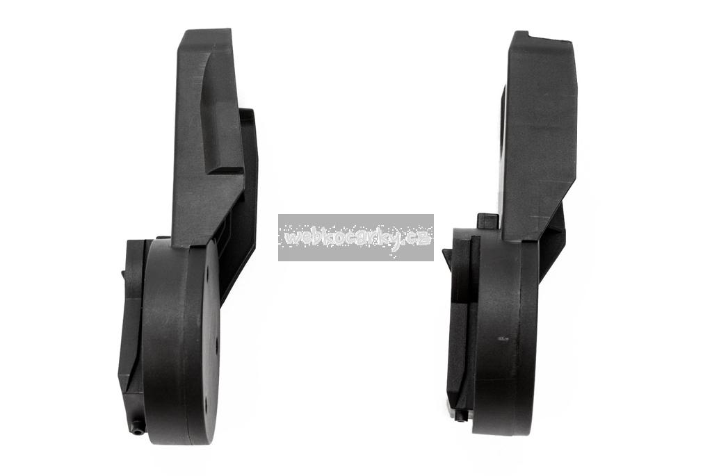 Poznámka: Před použitím zkontrolujte, zda jsou adaptéry pro upevnění autosedačky správně připojeny. Pamatujte – správná instalace je potvrzena charakteristickým kliknutím.