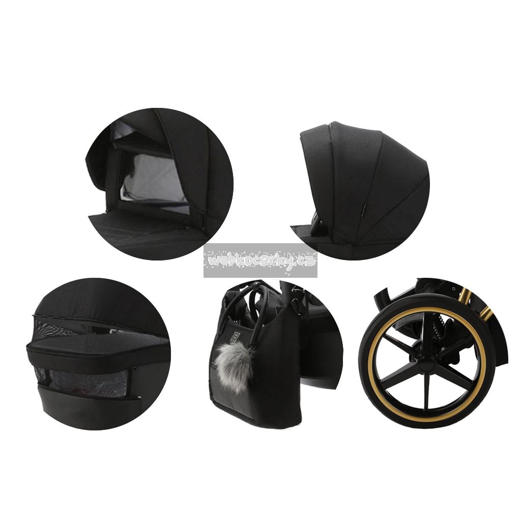 Sada navíc obsahuje řadu užitečných doplňků, které vám pomohou s každodenní organizací, jako je prostorná taška + popruh na tašku, pláštěnka, moskytiéra, rukavice a přebalovací podložka.