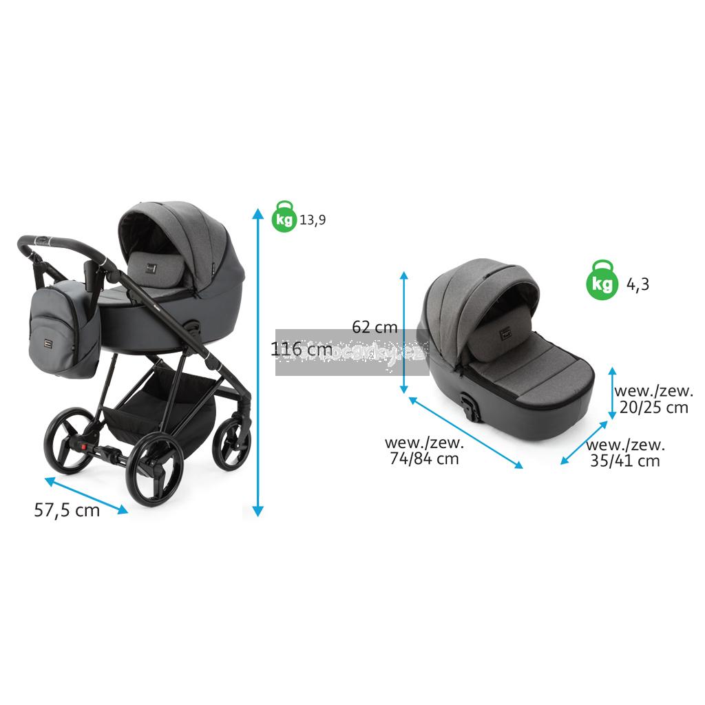 - rozměry rozloženého kočárku: 116 x 57,5 x 110-119 cm (D x Š x V)