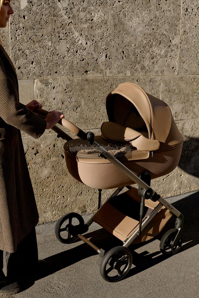 Anex Eli je vytvořen s ohledem na ergonomii, aby zajistil rodičům nekompromisní zážitek z designu a funkčnosti. S ekokůží působí kočárek přirozeně a úžasně elegantně. Malá, ale pevná kola zajišťují plynulý pohyb po městě, zatímco kompaktní a praktická taška obsahuje všechny potřebné věci pro rodiče a děti při cestování.