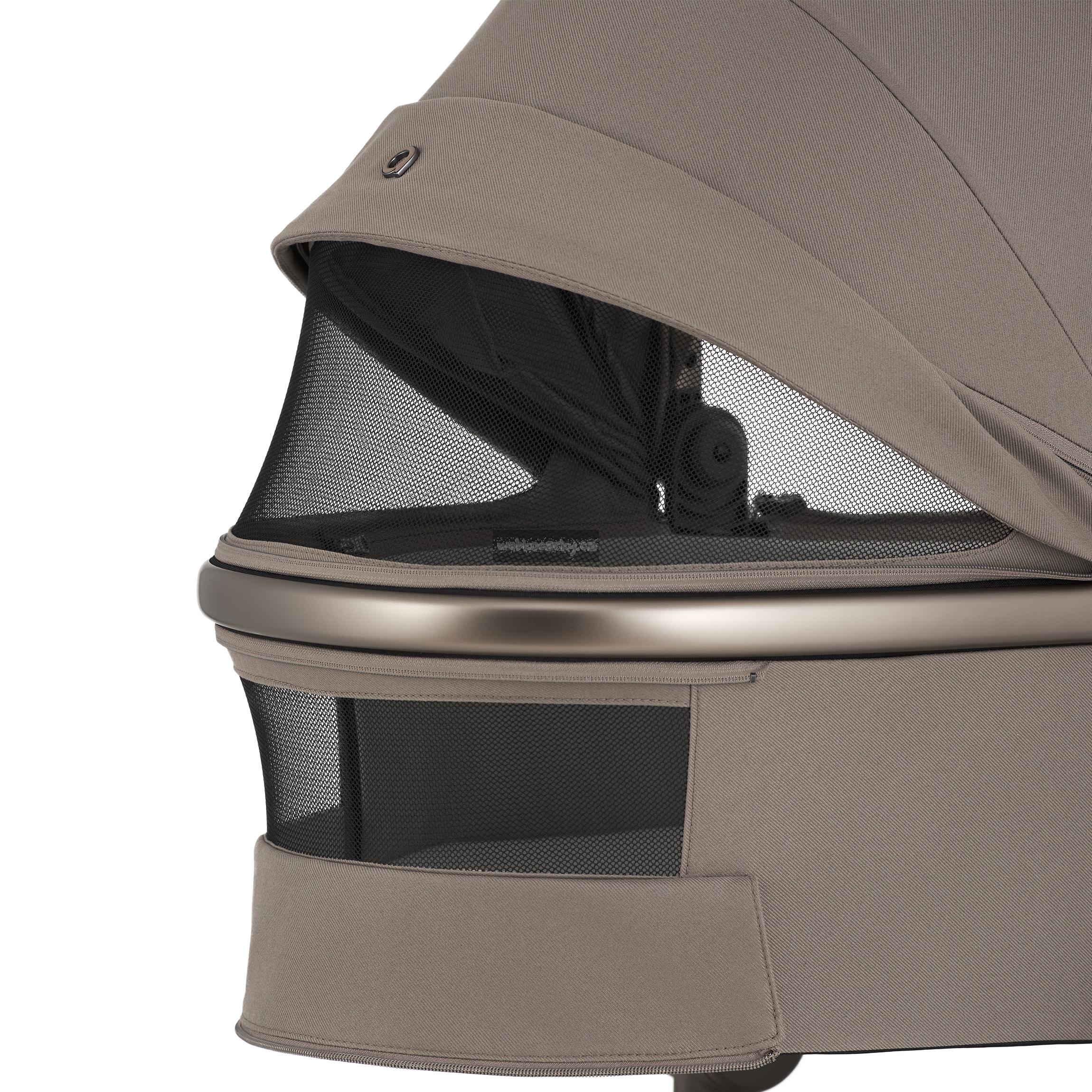 - Ventilační systém - kočárek má propracovaný ventilační systém, který zajišťuje ventilaci na všech potřebných místech — od stříšky a přední části korbičky až po opěrku nohou a stříšku sportovní části.