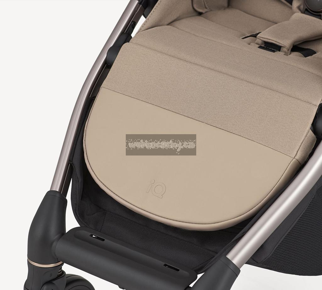 - Větrání 360° - Aby bylo vaše děťátko v pohodlí a chladu, IQ má důmyslný prodyšný systém, který zajišťuje větrání na všech správných místech – od stříšky korby a stříšky sedací části až po opěrku nohou. Opěrka zad je také vybavena větráním ze síťoviny.