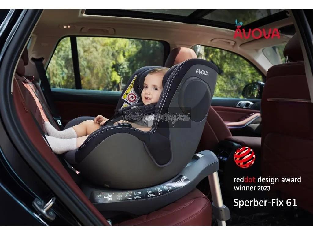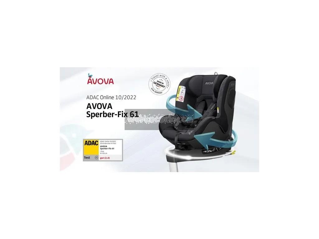 Německá otočná autosedačka Avova Sperber-Fix 61 schválená podle R129/3 i-Size nabízí bezpečnou jízdu v protisměru a pohodlí pro dítě i rodiče. Autosedačka je otestovaná nezávislým testem organizované německým automotoklubem ADAC. V Aktuální testu autosedaček 10/2022 získala celkové hodnocení GUT 2,4! Zároveň získala také vítězství Reddot Design Award 2023.