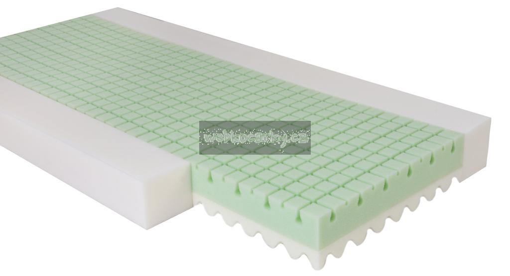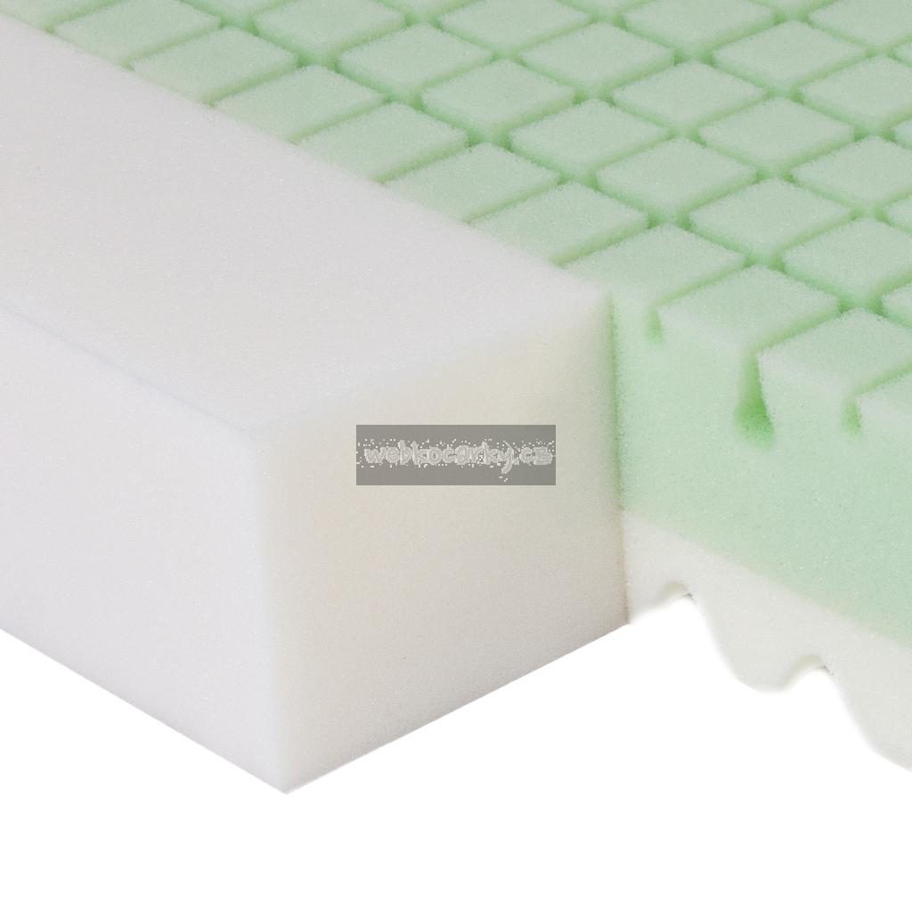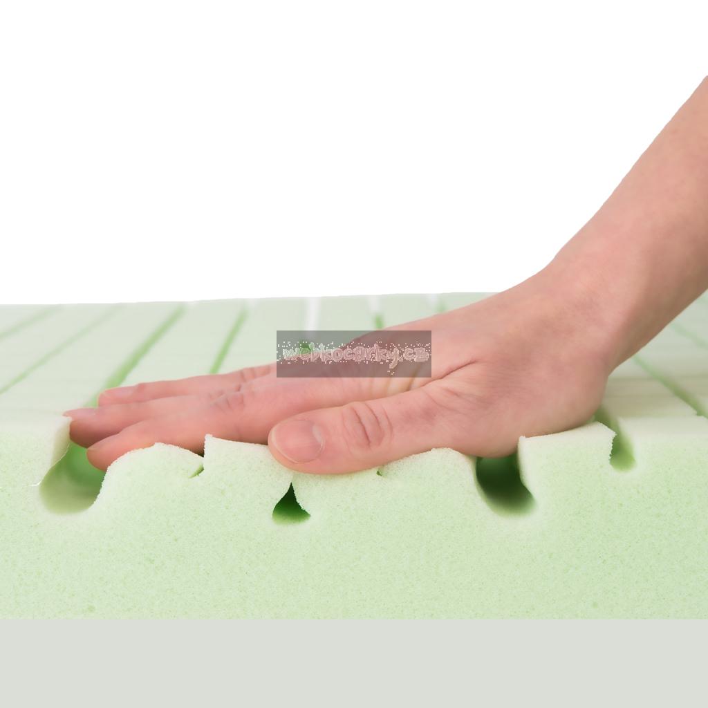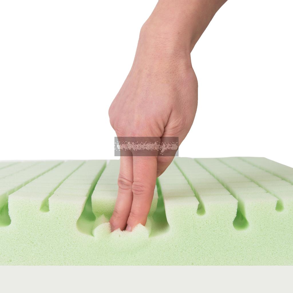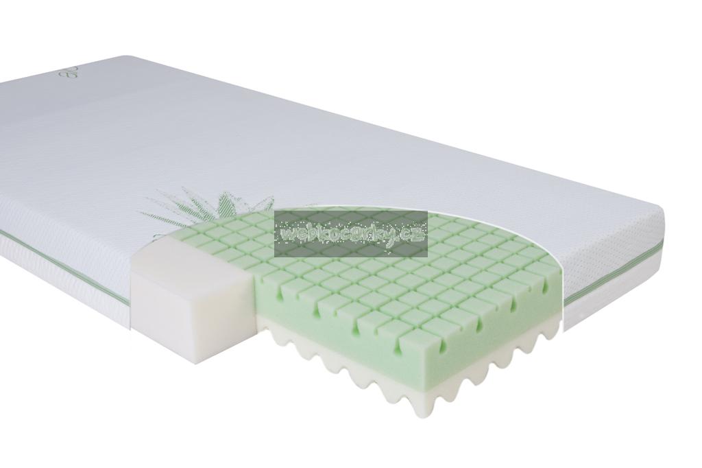 Oboustranná matrace ECO GREEN z polyuretanové pěny a paměťové pěny má nepromokavý potah z materiálu Tencel s Aloe Vera. Všechny použité materiály jsou certifikovány nejvyšší bezpečnostní třídou I. Oeko Tex a použity certifikované lepidlo na přírodní bázi, určené pro kontakt s dětmi. Matrace má příčné vnitřní ventilační kanálky s konstrukcí "non-stop cirkulace" s masážními vlastnostmi.