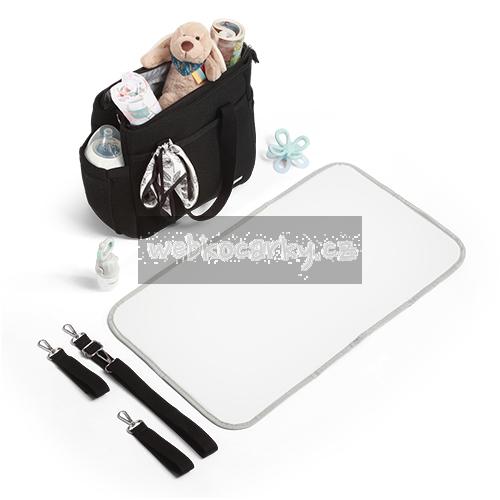 - Souprava obsahuje velkou a hrubou přebalovací podložku, pokud jste s miminkem venku a potřebujete vyměnit plenku.