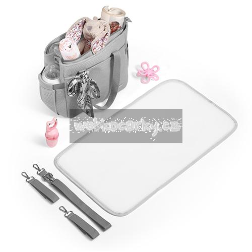 - Souprava obsahuje velkou a hrubou přebalovací podložku, pokud jste s miminkem venku a potřebujete vyměnit plenku.