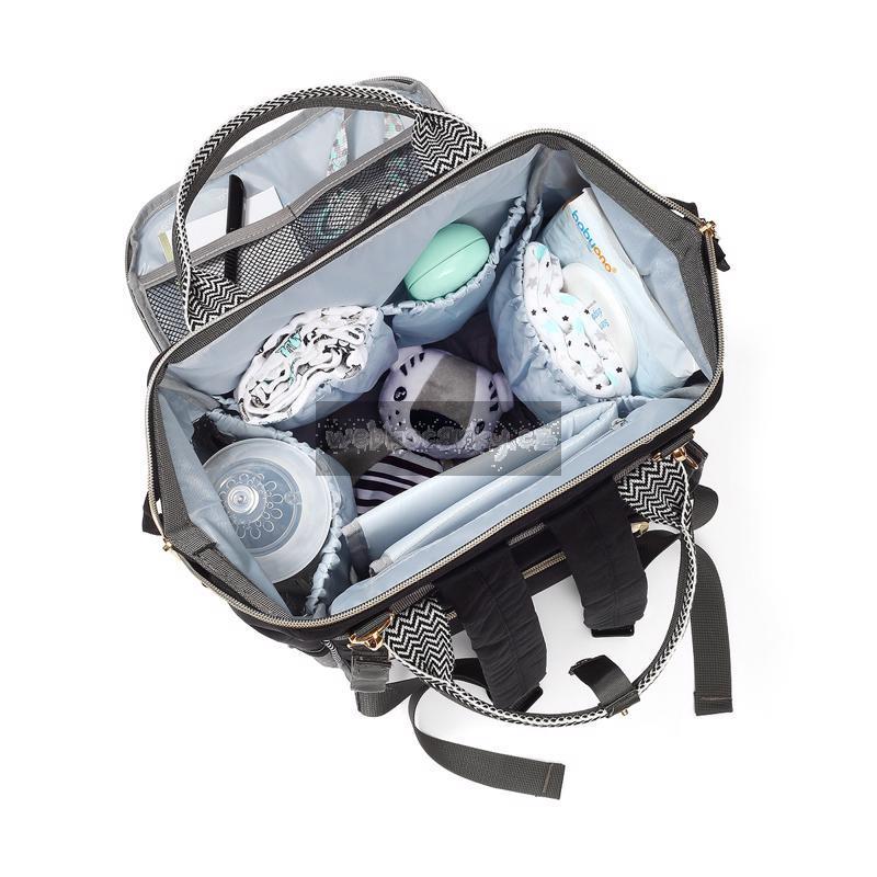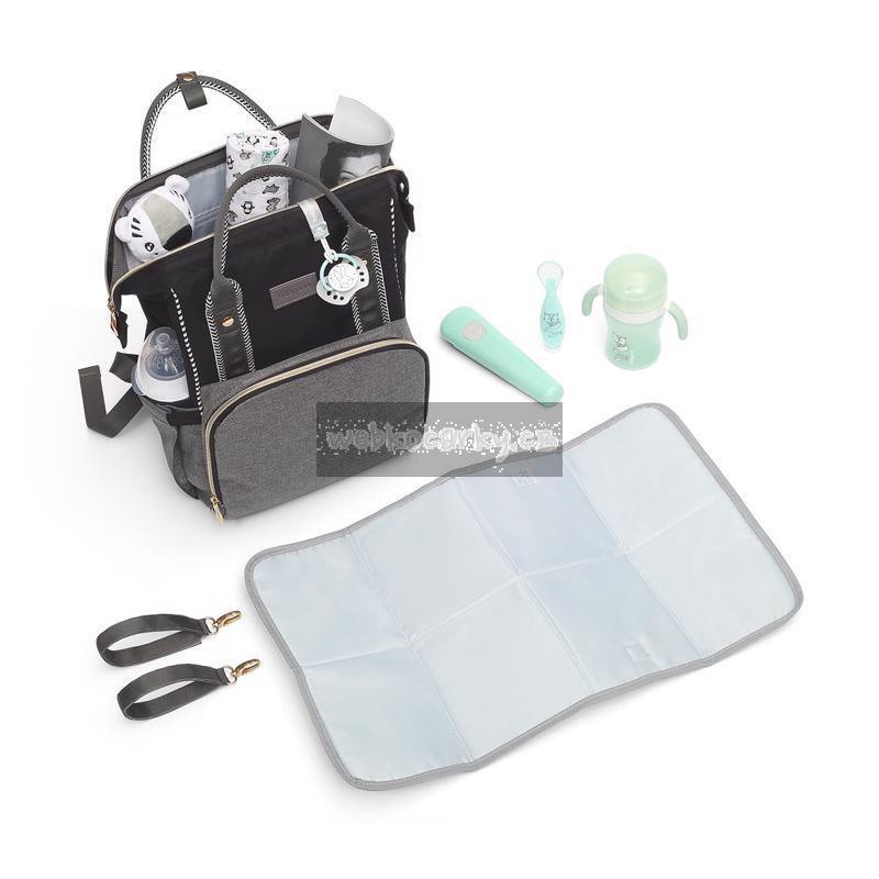 - 12 vyhrazených kapes včetně kapsy s tepelnou izolací na láhve, kapsy na mokré předměty jako i ty, kde je rychlý přístup pro dudlík nebo klíče