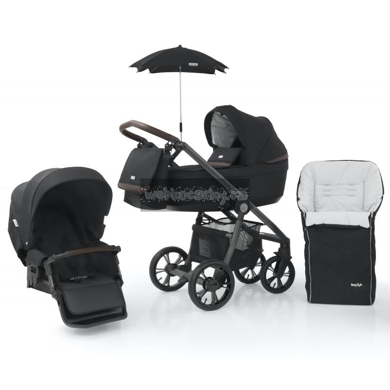 Součástí hlubokého kočárku Prestige3 je také odpovídající textilní sada – se sedací částí vhodnou k umístění na rámu směrem k rodiči nebo do okolí, s nánožníkem, fusakem, přebalovací taškou a slunečníkem. Dodatečně si můžete zakoupit i kompatibilní autosedačku.