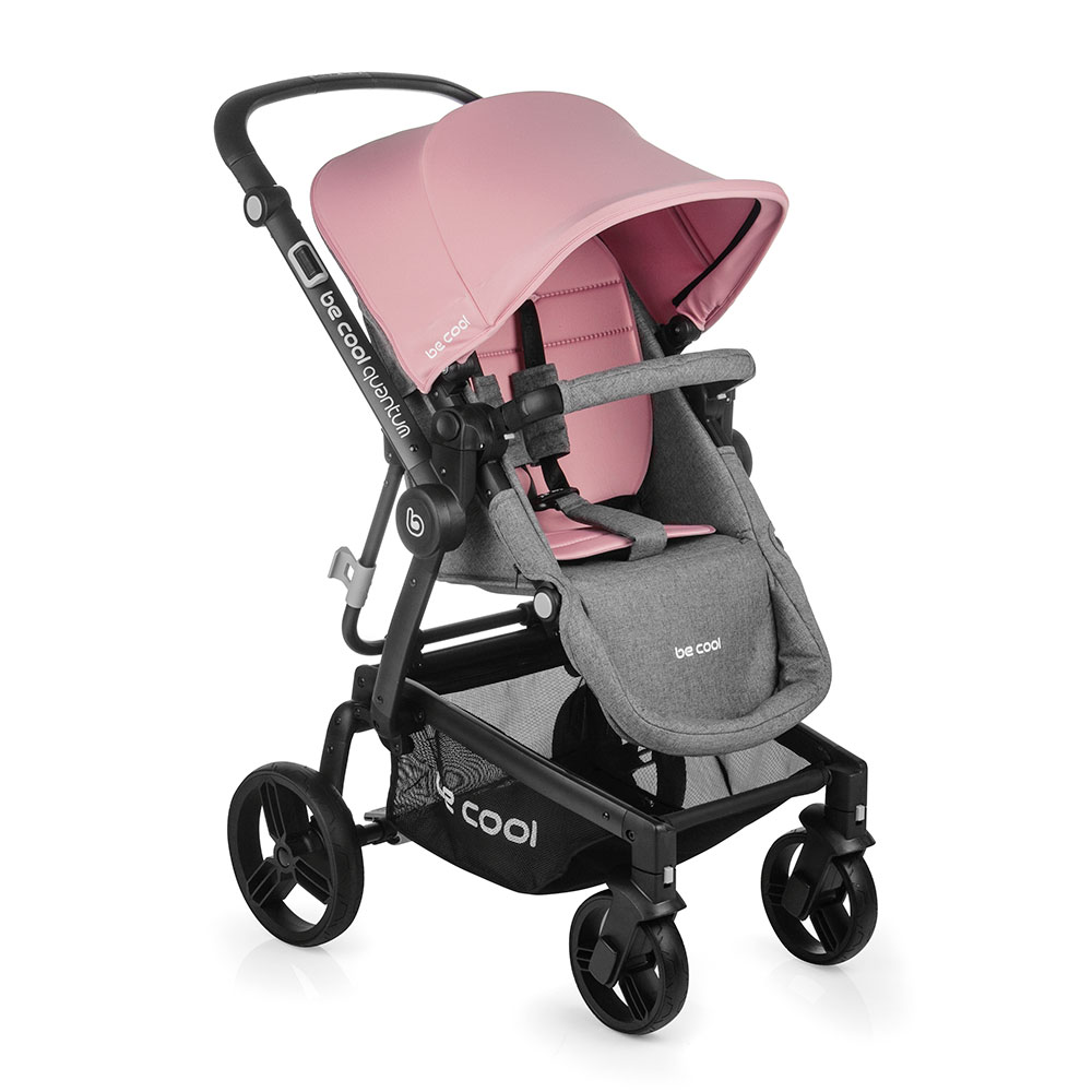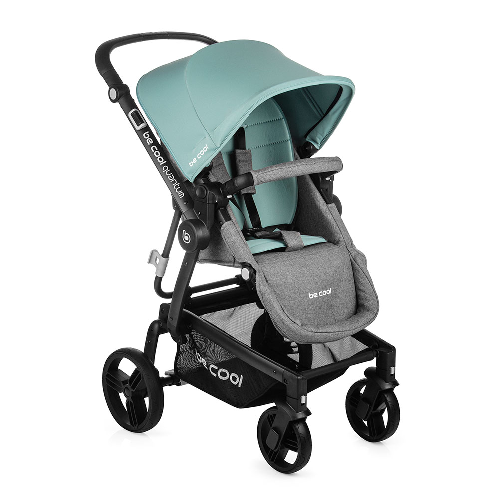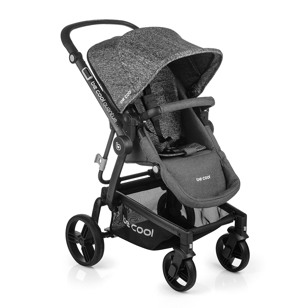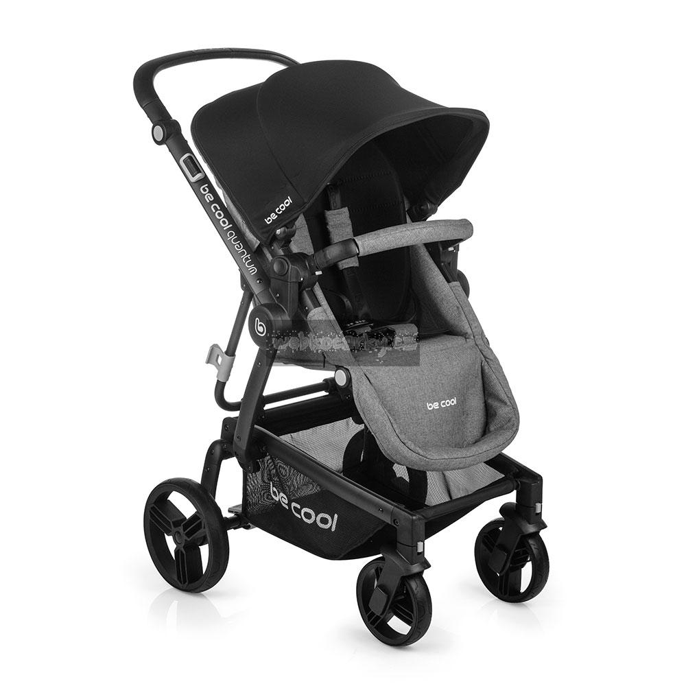 Be Cool Quantum se skládá spolu s namontovanou sedačkou. Může se snížit během několika sekund - šetří to čas a energii. Po složení kočárek stojí sám. Odložte ho kam chcete.