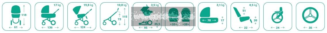 Lehce ovladatelný a široké možnosti regulace zádových a nožních opěrek dovolují najít tu nejvýhodnější polohu pro pohodlné cestování dětí. Skladný a malé rozměry po složení kočárku jsou jen základní charaktristiky tohoto modelu. Vylepšený, odlehčený podvozek s patentovaným systémem skládání, nové hluboké korbičky.
