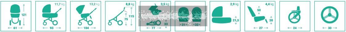 - moderní lehká hliníková konstrukce s předními otočnými koly zajistí snadnou manipulace s kočárkem