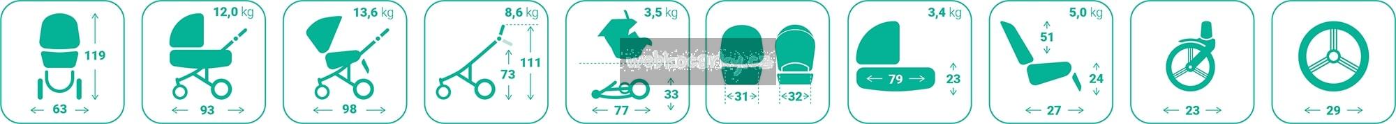 - po dokoupení adaptérů lze připevnit autosedačku Bebetto Ramatti-Mars nebo Maxi-Cosi, Cybex