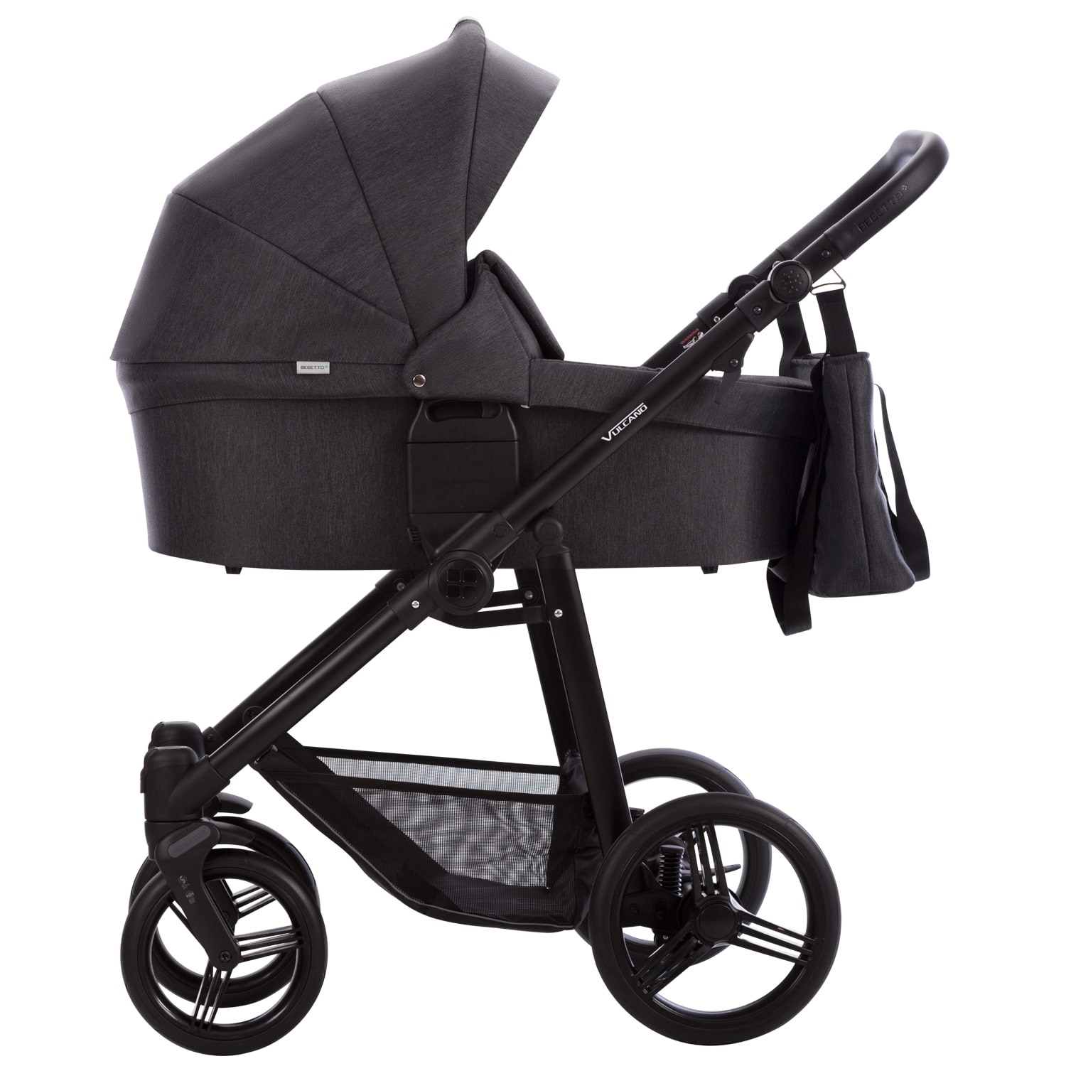 Bebetto Vulcano je lehký univerzální kočárek, který kombinuje nejlepší technologie z nejmodernějších tkanin. Výhodou je plastové dno vaničky, které se velmi lehce čistí ale také skrývá pokročilé možnosti cirkulace vzduchu.
