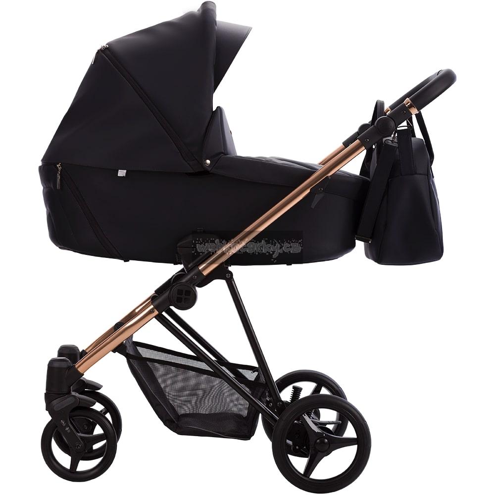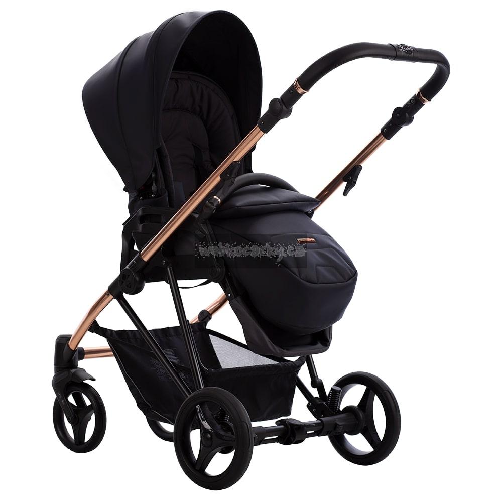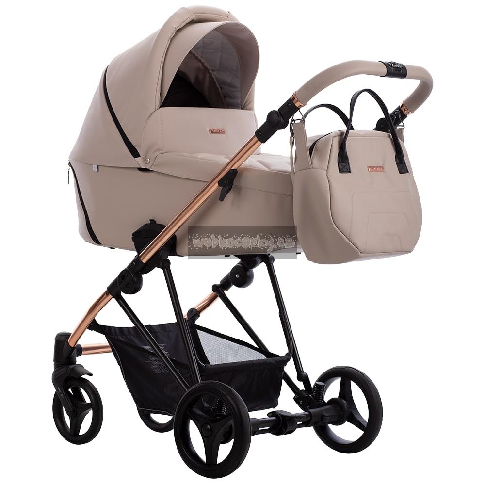 Ve verzi Premium Class je Yoddi k dispozici ve dvou verzích s čalouněním z ekokůže – v béžové nebo černé. Rám kočárku má lesklou měděnou barvu, která dokonale koresponduje s tlumenými barvami čalounění. Měděné kroužky na rukojeti a zábradlí dodávají kočárku mimořádný styl.