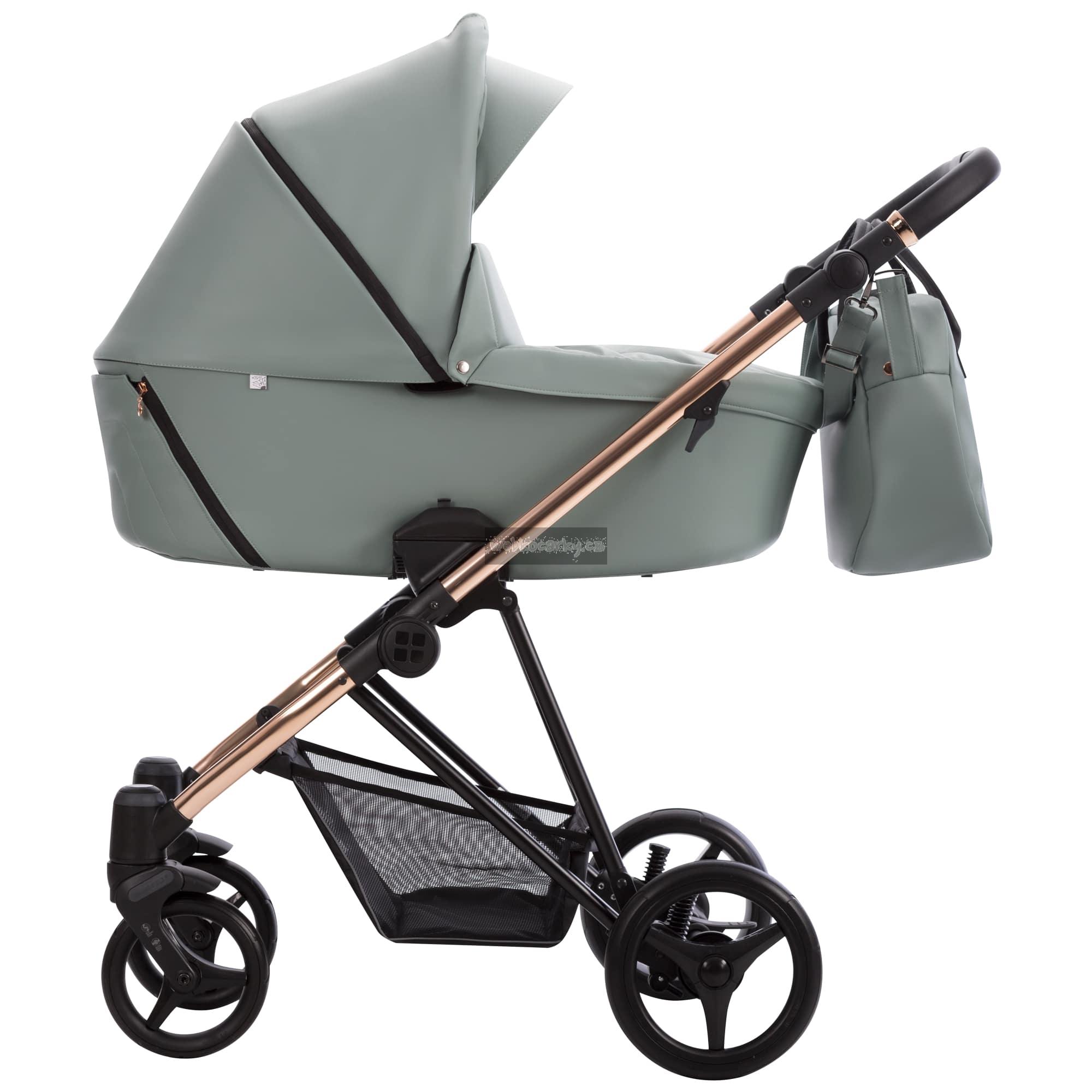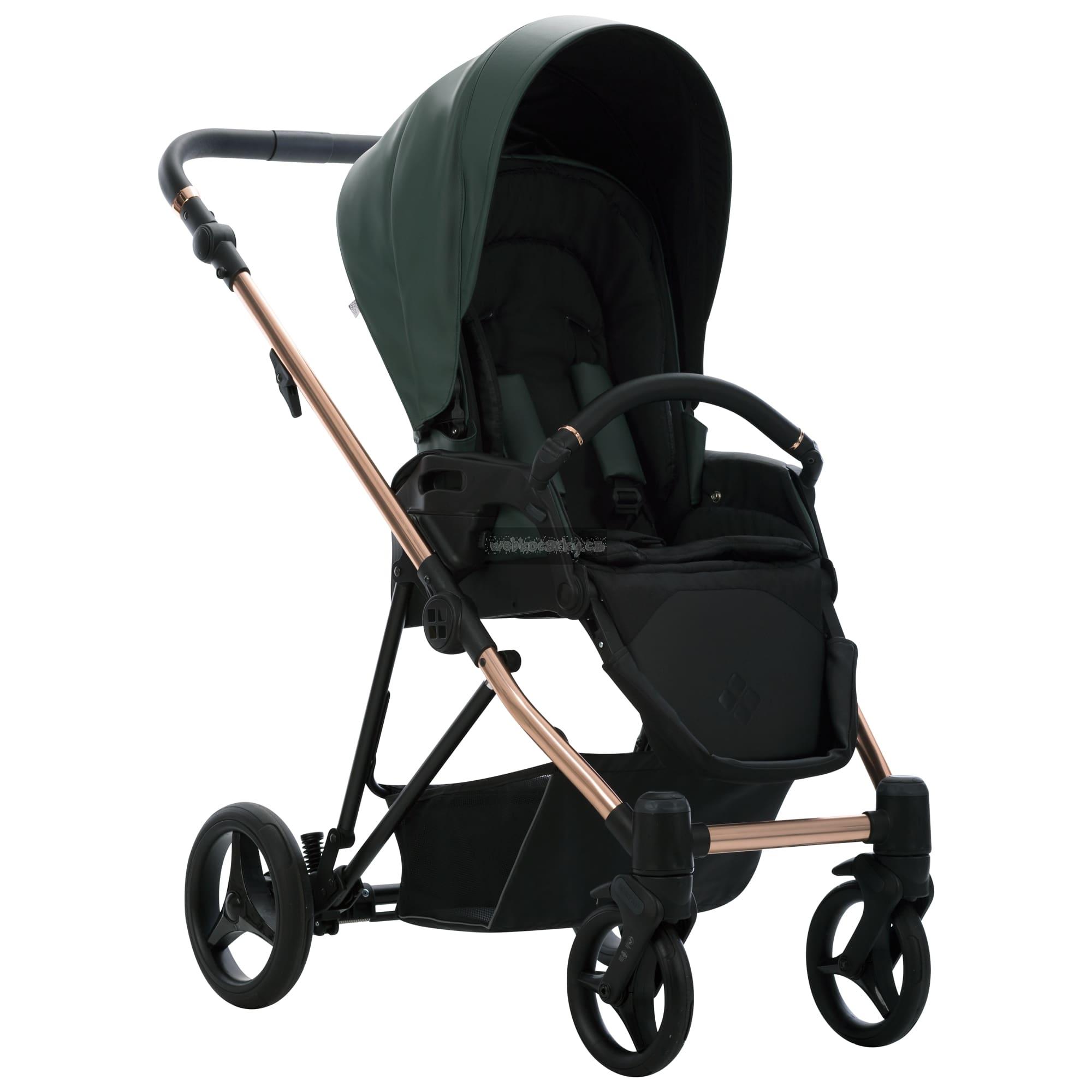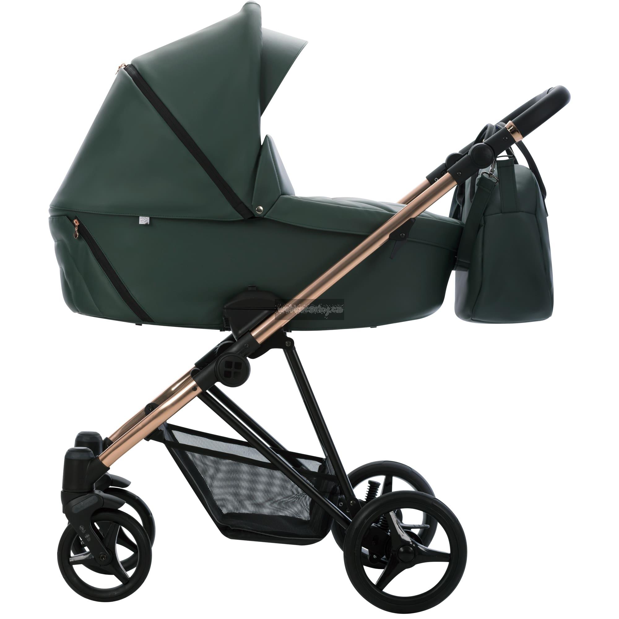 Ve verzi Premium Class je Yoddi k dispozici ve dvou verzích s čalouněním z ekokůže – v béžové nebo černé. Rám kočárku má lesklou měděnou barvu, která dokonale koresponduje s tlumenými barvami čalounění. Měděné kroužky na rukojeti a zábradlí dodávají kočárku mimořádný styl.