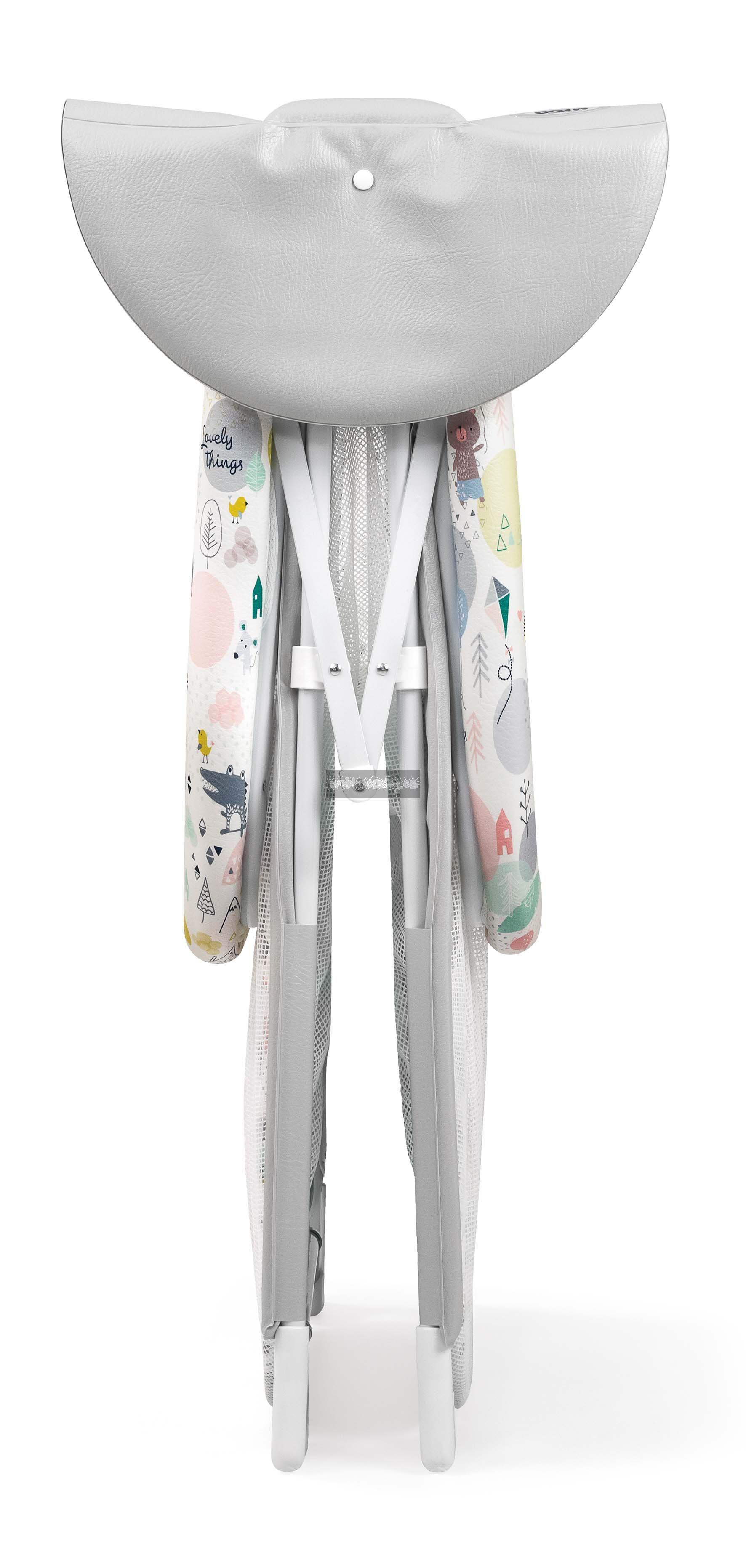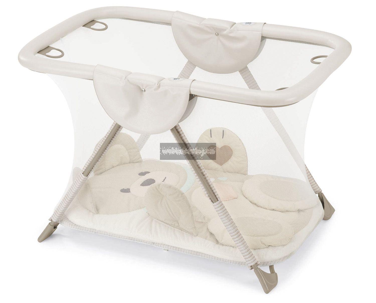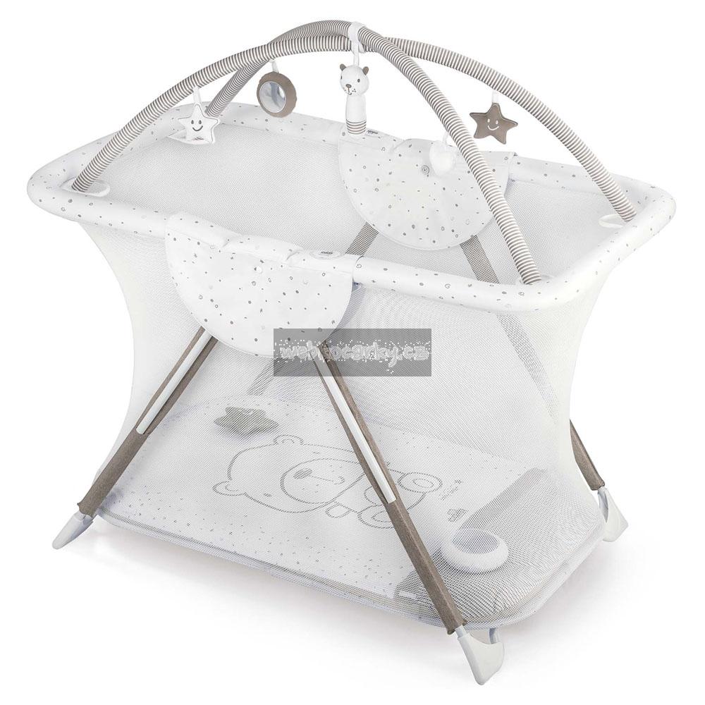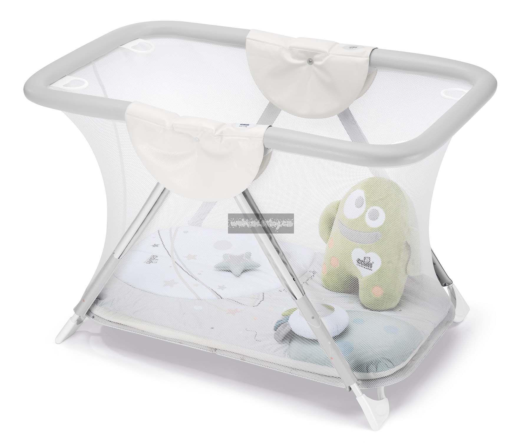 - Obsahuje měkkou hrací plochu s hračkami s interaktivními funkcemi (měkké odnímatelné hračky, malé zrcadlo, šustivý prvek, chrastítko)