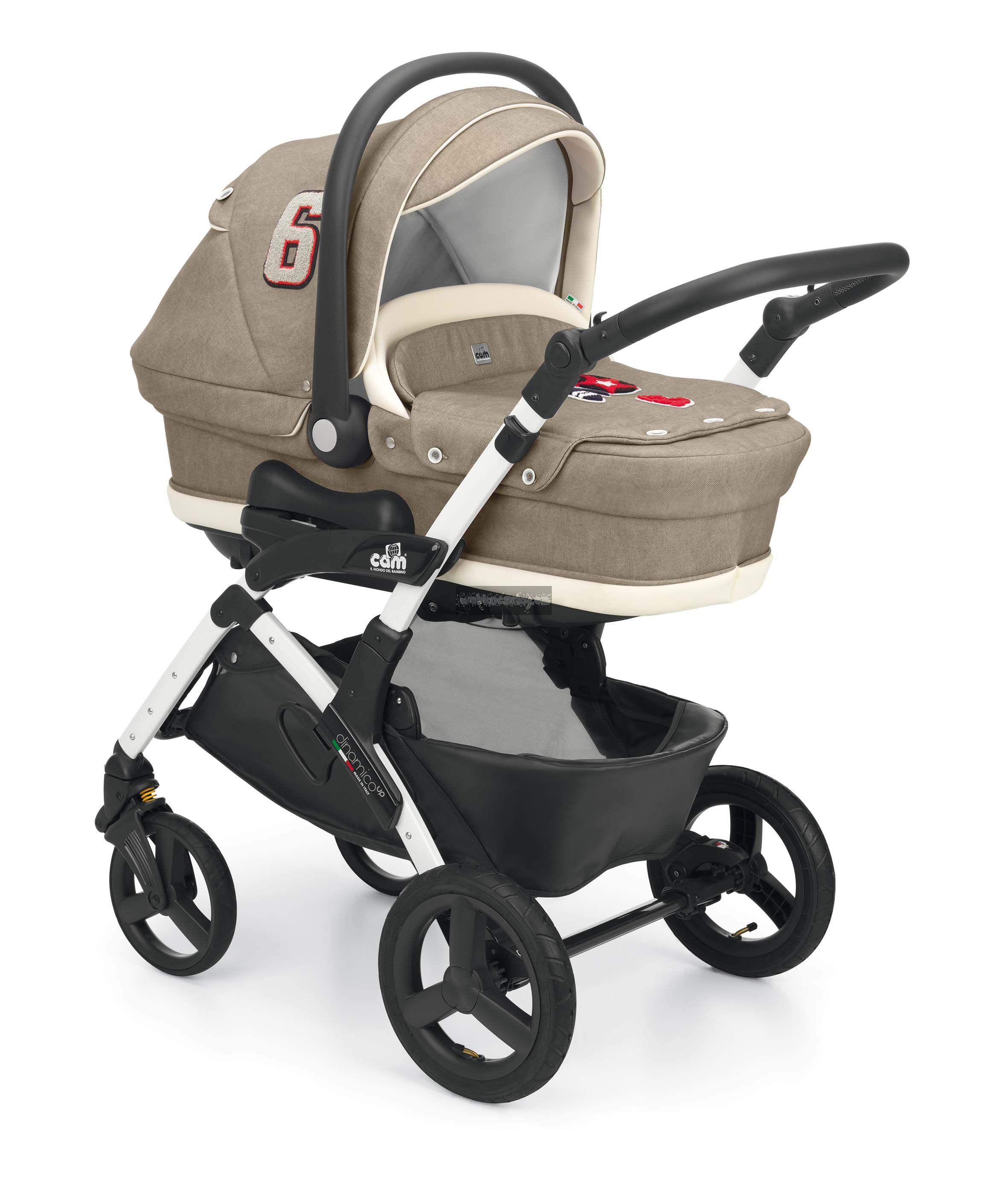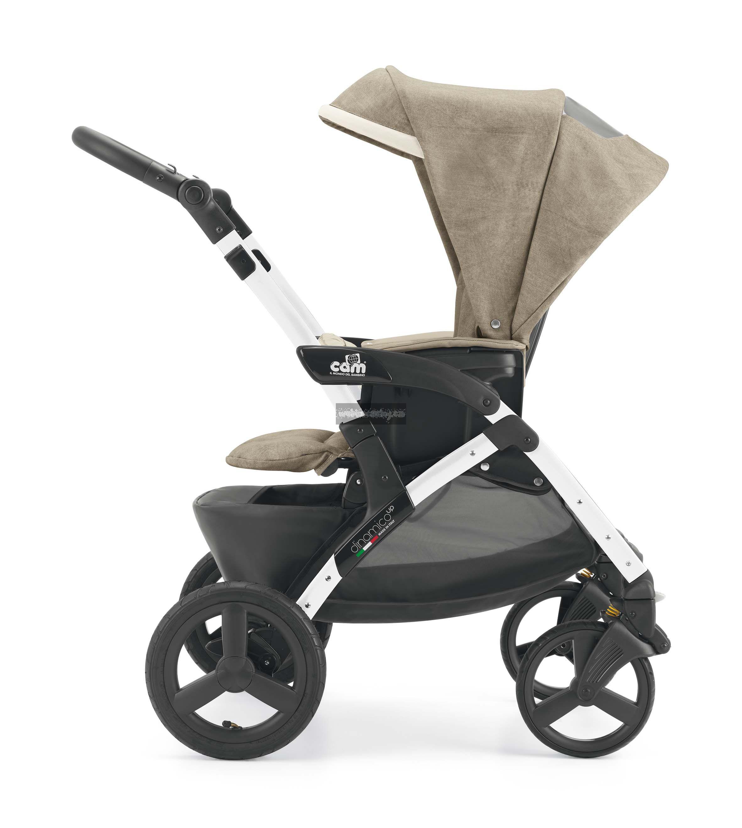 Cam Dinamico Up luxusní trojkombinace se stane nepostradatelným pomocníkem pro vaše každodenní použití. Cam Dinamico Up je set vhodný od narození až do 3 let věku. Kočárek je vybaven pro větší bezpečnost centrální brzdou.