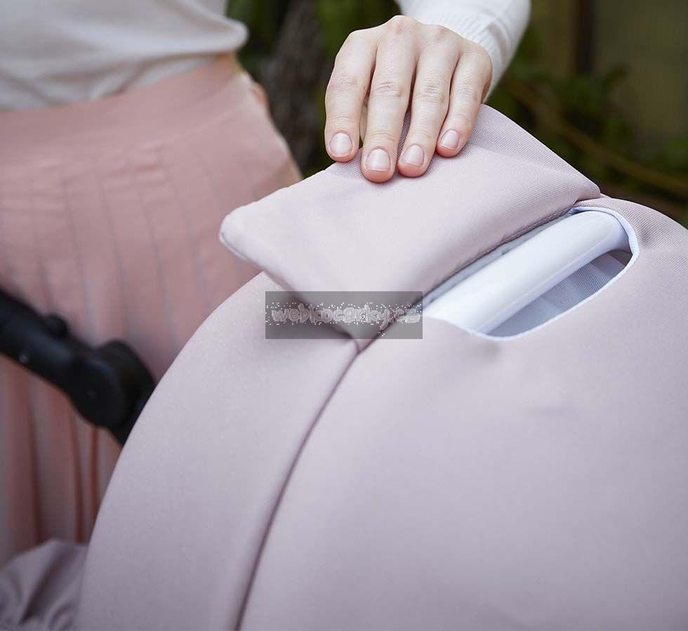 - Pomocí pojistky na spodku korby je možné výškově polohovat hlavičku dítěte.