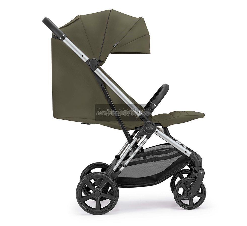 Kočárek CAM Off-road je lehký (pouze 8,5 kg) a kompaktní (výška pouhých 57 cm). Má hliníkový rám, který perfektně doladí design. Stříška včetně okénka v horní části vám dovolí nakouknout na dítě i během jízdy, stříška je vzadu z části otevíratelná a obsahuje moskytiéru, tak je zajištěno, že se dítě v horkých letních dnech nebude přehřívat, přičemž poskytuje UV 50+ ochranu.