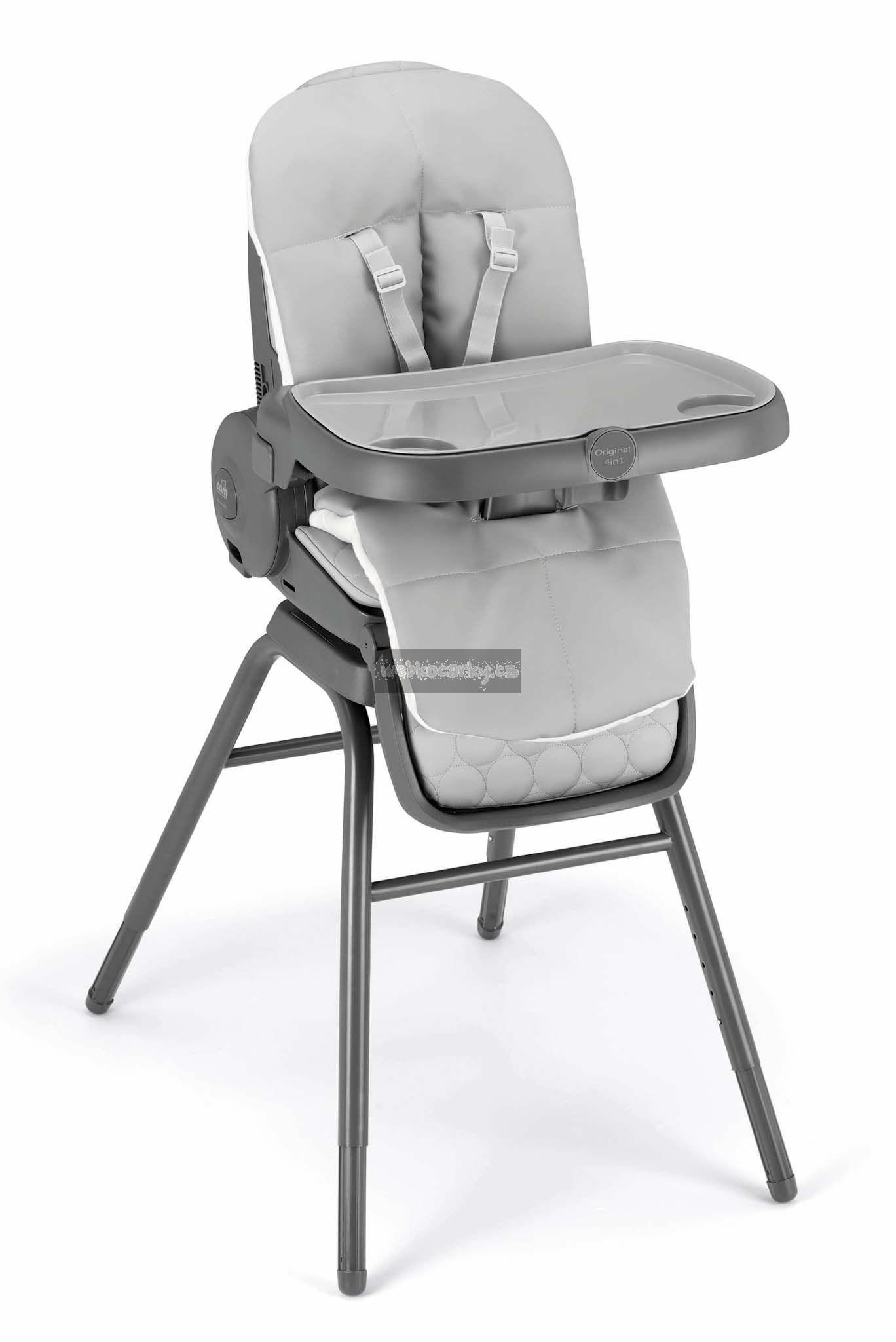 židlička Cam Original 4 v 1 v sobě spojuje klasickou jídlelní židličku, lehačku, přenosnou jídelní židličku i židli pro starší děti
