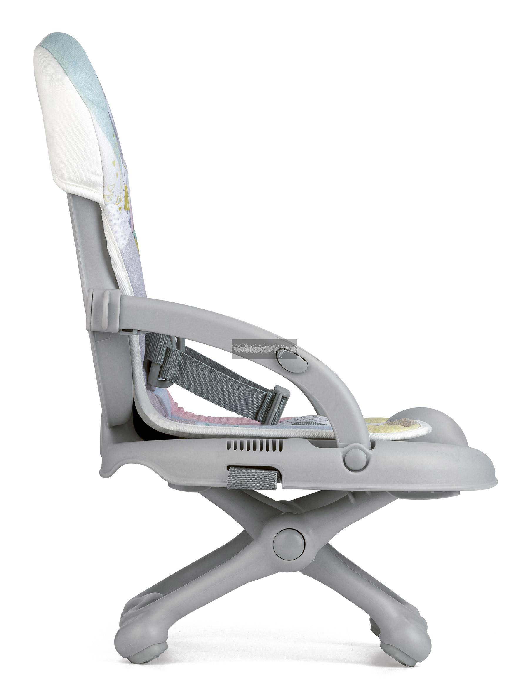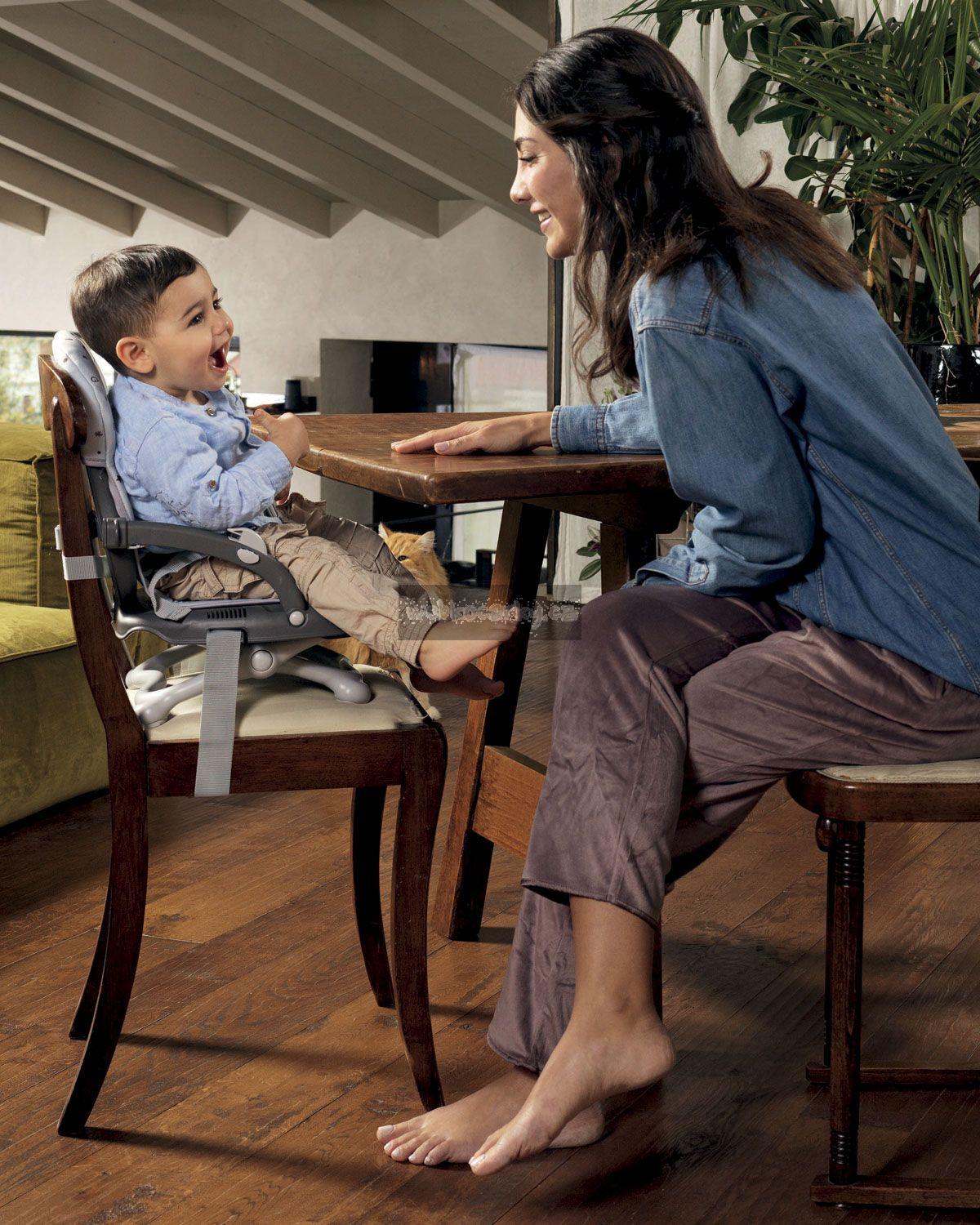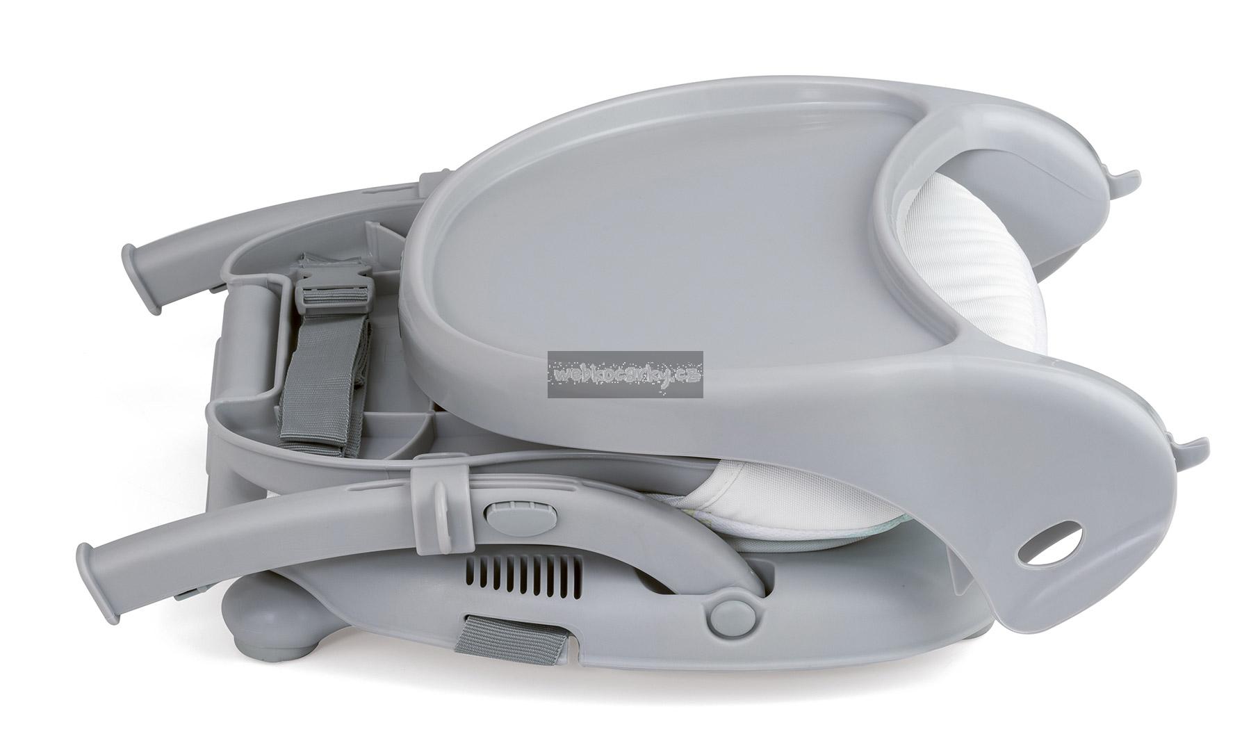 Je vybavena zvláštními popruhy, pomocí nichž lze pevně přivázat židličku ke klasické kuchyňské židli.