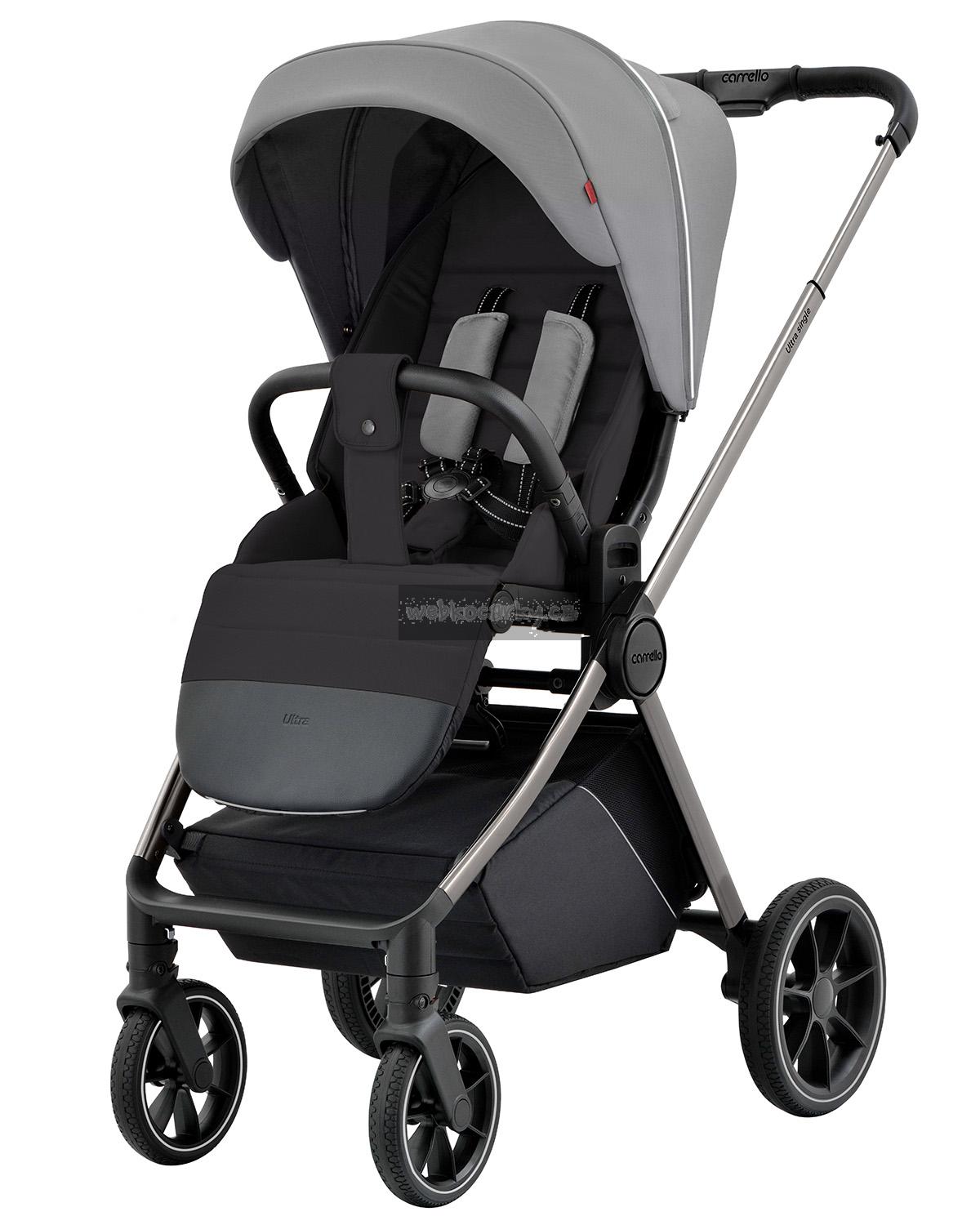 O pohodlí na výletech se postará také prostorné, měkce polstrované sezení s výškově nastavitelným pětibodovým bezpečnostním pásem. Zádová opěrka s odvětráním je polohovatelná až do lehu, polohovat lze i opěrku na nožičky. Kočárek Cearrello Ultra nabízí možnost prodloužit opěrku na nožičky, což v kombinaci s výškově nastavitelnou stříškou pomáhá kočárku adaptovat se růstu dítěte.