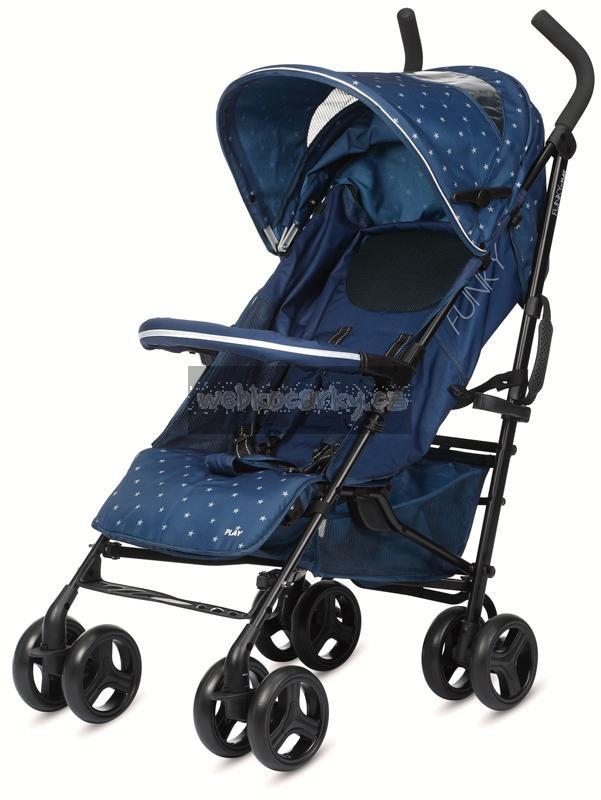 Funky je vybaven 5-polohovým opěradlem, vnitřním polstrováním a nastavitelnou opěrkou nohou a odnímatelnou loketní opěrkou s reflexním materiálem, což z něj dělá velmi pohodlný kočárek.