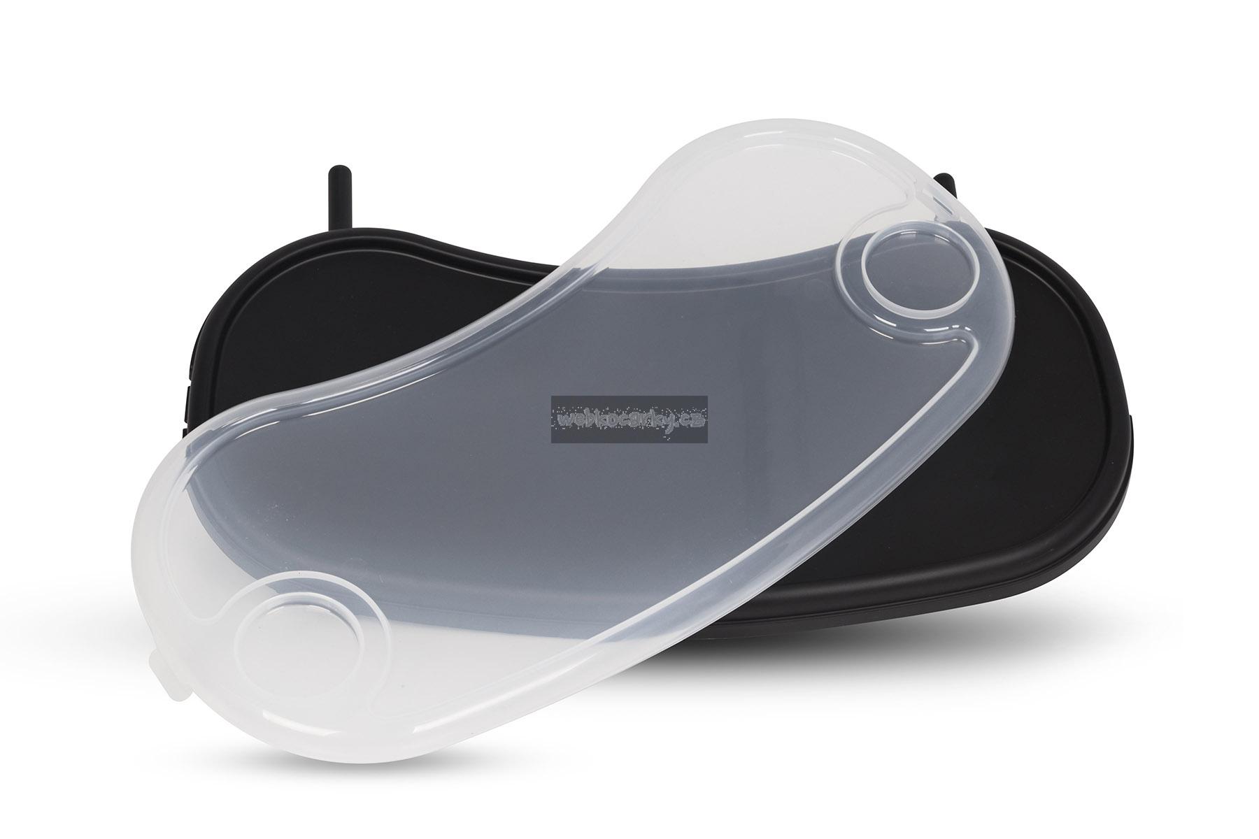 - dvojitý tác- DADA má 2 zásobníky pro servírování jídel. Hlavní zásobník má nastavení výsuvu a ochranu proti šlápnutí. Vnější zásobník je vyroben ze snadno čistitelného plastu. Má okraj, který zabraňuje stékání rozlitých tekutin a místo na nápoje. Lze jej rychle rozebrat pro praní.