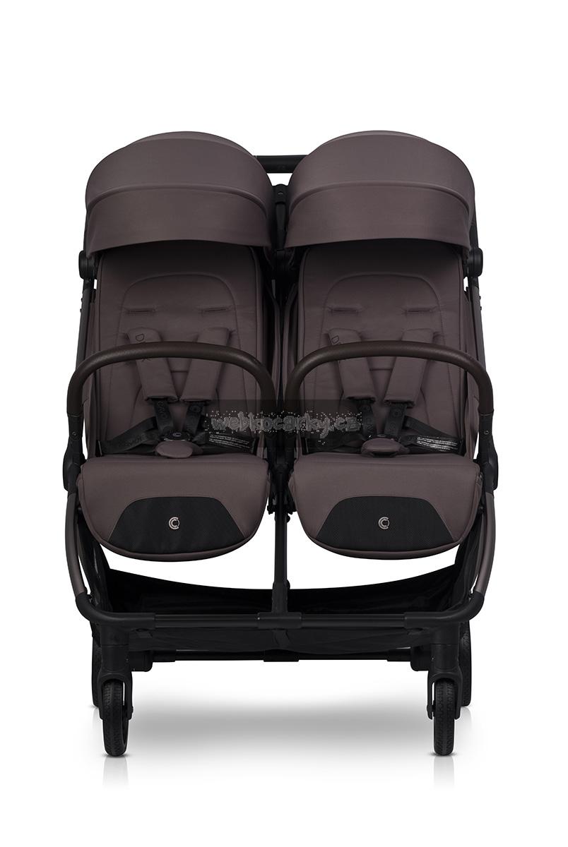 Navzdory nízké hmotnosti a kompaktní velikosti je dvoukočárek CAVOE DEUX velmi pohodlný jak pro děti, tak pro řidiče kočárku. Pohodlí zajišťují gelová kola s celoročním dezénem a tlumením nárazů na všech kolech. Díky správné rovnováze rámu kočárek snadno narazí na obrubník i se dvěma dětmi. Široký přední rozchod usnadňuje ovladatelnost kočárku a usnadňuje jeho manévrování. Budete překvapeni, jak snadno se dostane do zatáček. Můžete ji snadno řídit jednou rukou.