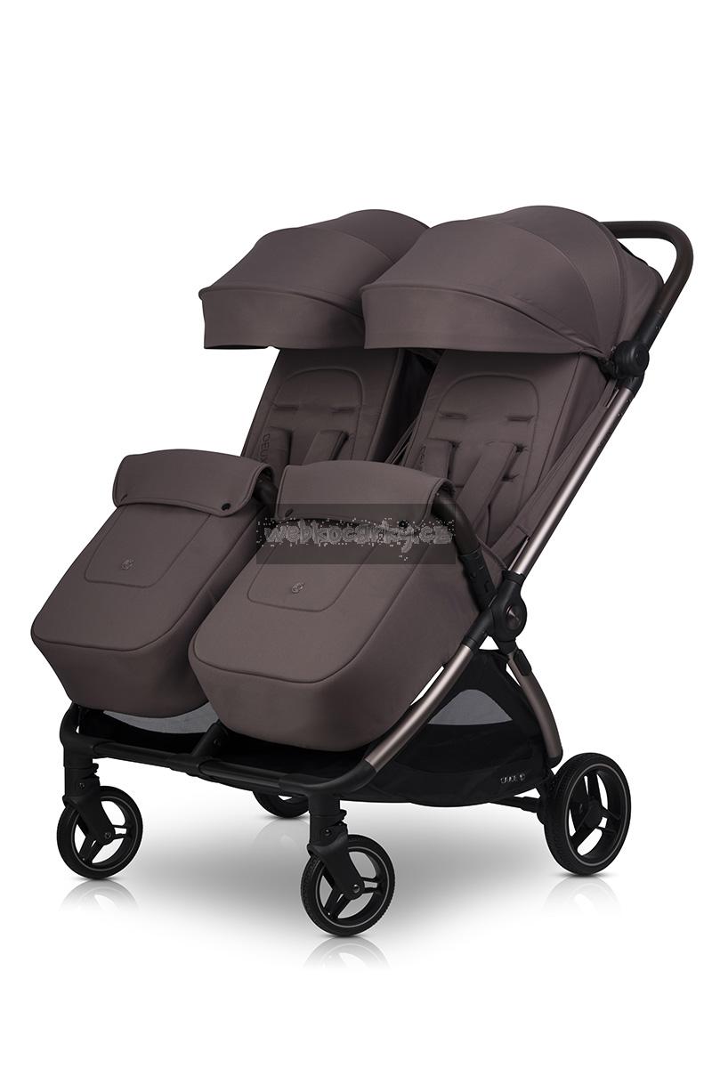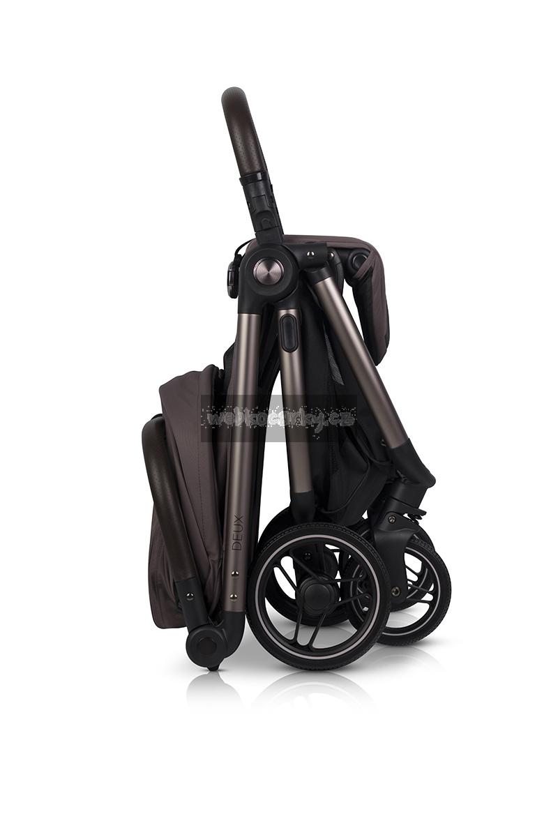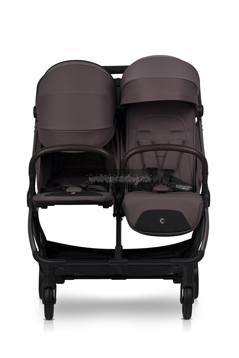 Kočárek DEUX pro dvě děti od CAVOE je prémiový produkt a jistě splní očekávání i těch nejnáročnějších uživatelů. Kovové prvky rámu kočárku jsou eloxované v módní a elegantní hnědé a šampaňské barvě. Eloxovaný rám je také mnohem odolnější proti poškrábání než standardní nátěry.