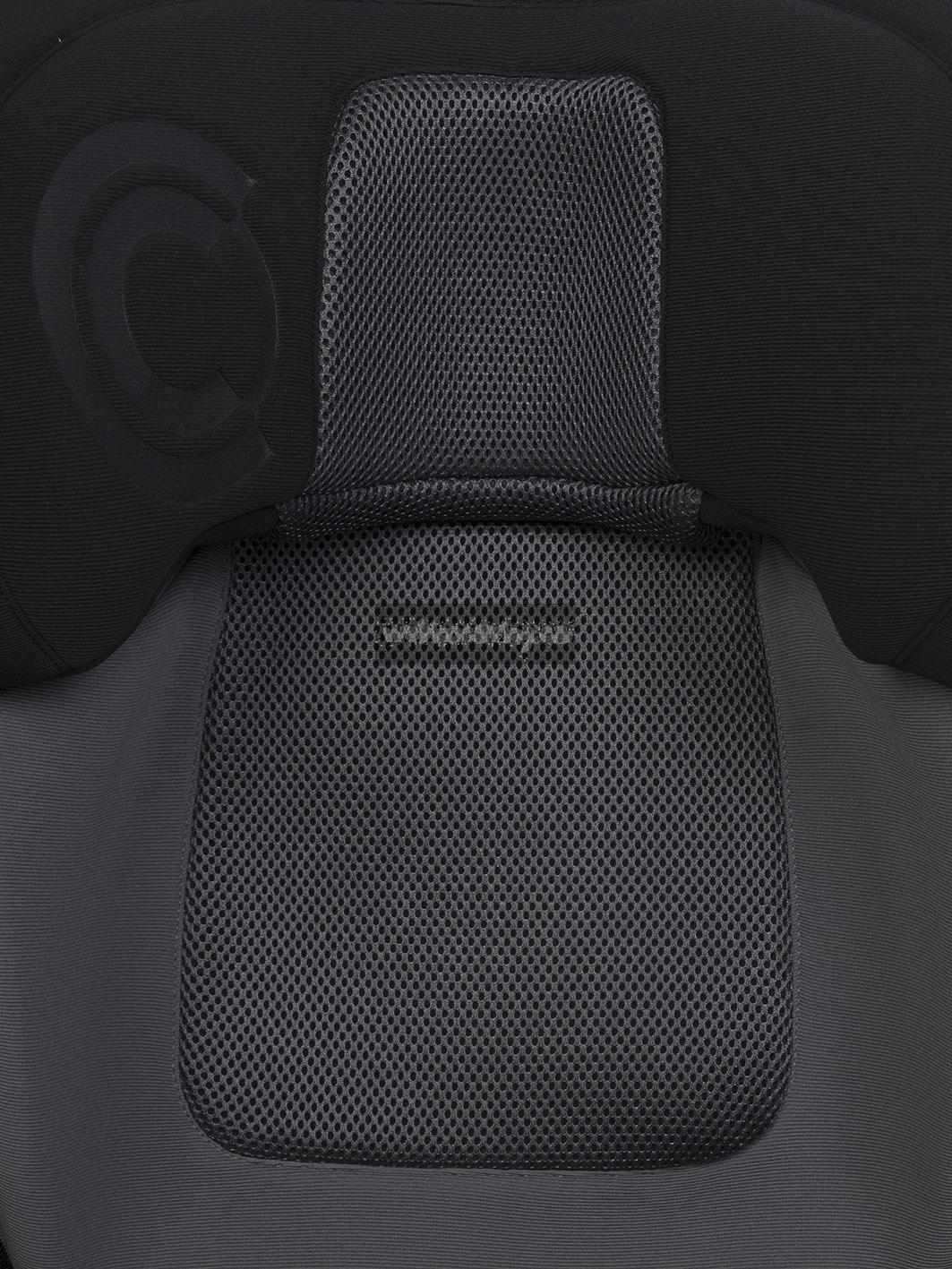 - Druhým typem látky je specializovaná ventilovaná 3D látka (tzv. voština), která zajišťuje správnou cirkulaci vzduchu a nezahřívá se jako tradiční potahové látky. Použita byla na místech anatomicky přizpůsobených dětskému tělu: na sedák, zádovou opěrku a hlavovou opěrku, odvádí vlhkost a zabraňuje tak pocení