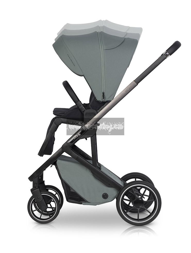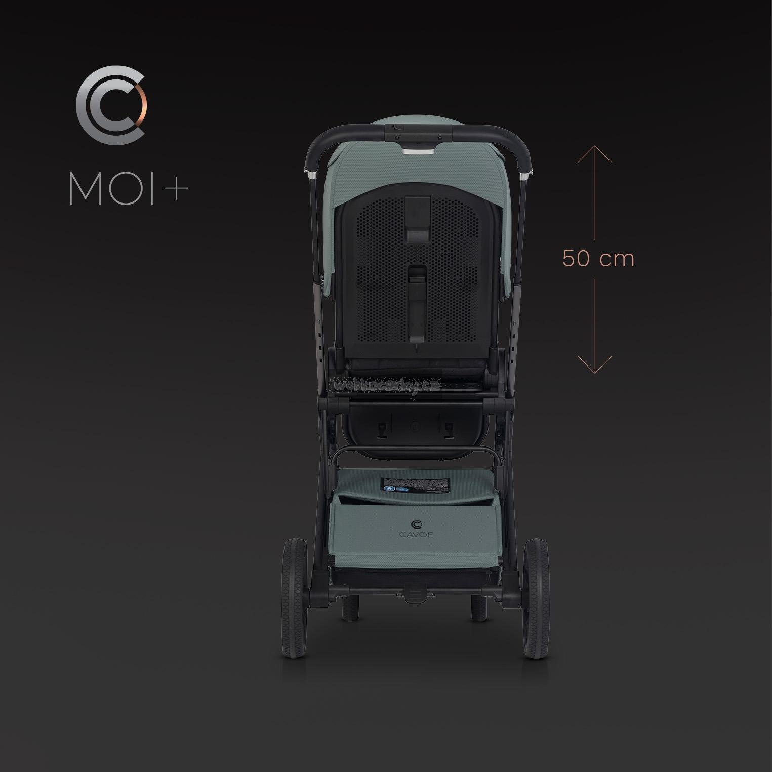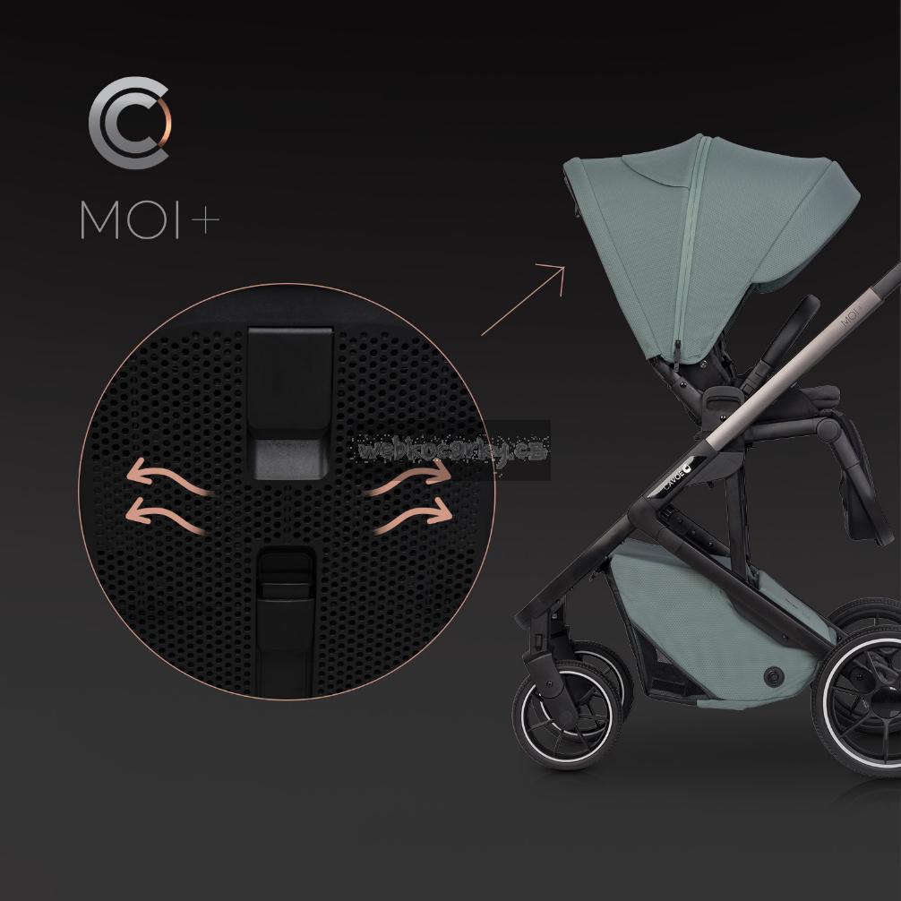 Co znamená + ve jménu nového MOI? Změny se týkají sportovní sedačky. Opěradlo v sedáku je prodlouženo na 50 cm a navíc má 3-úrovňové nastavení výšky stříšky, čímž se prostor nad hlavou pro dítě zvětší o 8 cm (to znamená, že sedák lze používat další rok).