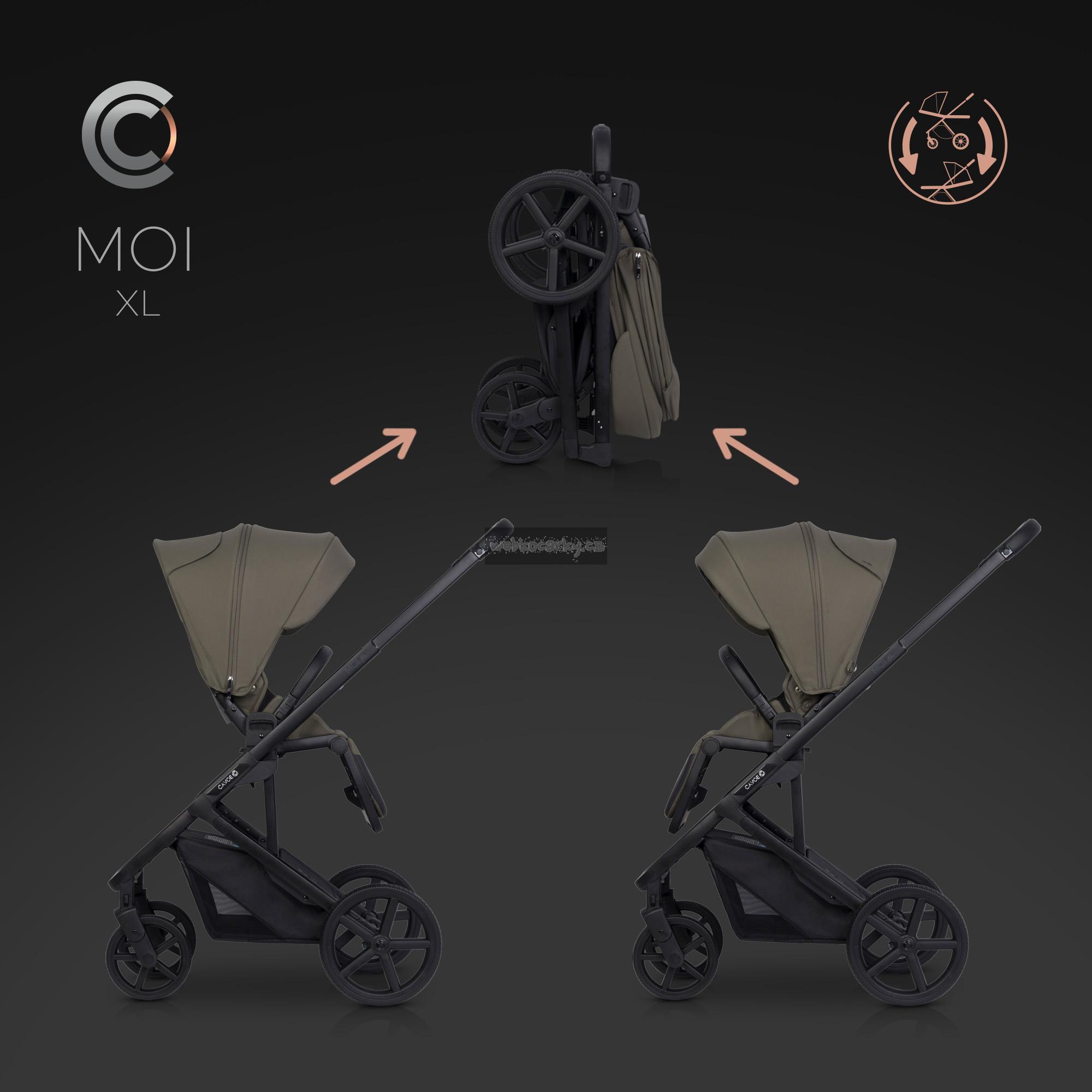 Dětský kočárek MOI XL je nejnovější a určitě nejlepší produkt CAVOE z řady MOI. Rozměry kočárku dokonale odpovídají nejnovějším trendům na trhu. MOI XL je větší než jeho předchůdci v řadě MOI, ale stále je to lehký, kompaktní multifunkční kočárek. Sedačka i korbička byly rozšířeny, což za prvé zvyšuje pohodlí dítěte a za druhé činí kočárek stabilnější a pohodlnější při jízdě. Větší kola si poradí i s těžším terénem. Zůstávají však lehká a bezúdržbová díky použití polyuretanových elastomerových pneumatik, které jsou v současnosti nejlepším dostupným materiálem pro výrobu kol do kočárků.