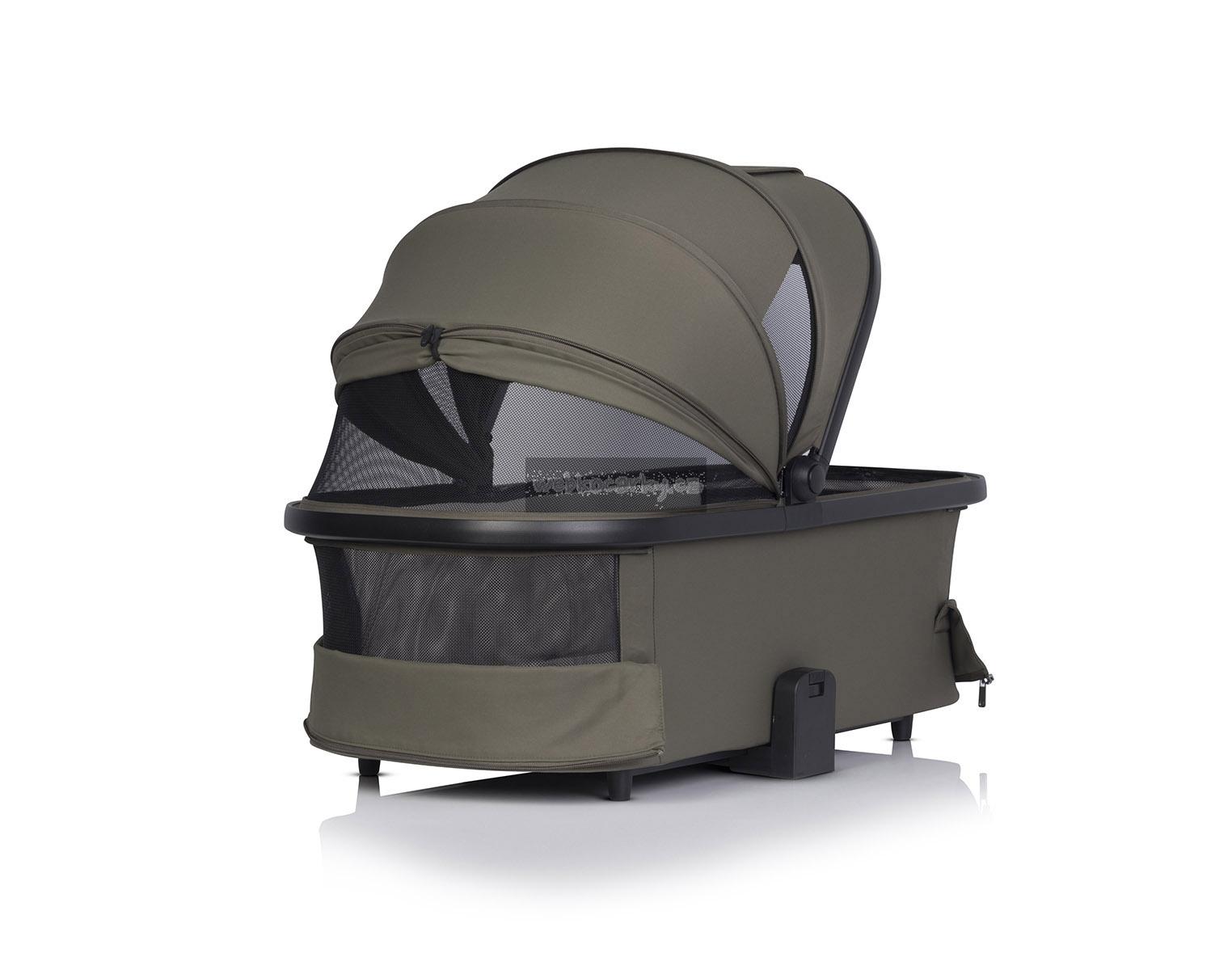 Korbička ke kočárku MOI XL je velká a pohodlná. Jeho vnitřní délka je 78cm, takže do přesunu dítěte do kočárku jistě postačí. Korbička je velmi lehká a tvarovaná. Pro přepravu nebo skladování jej lze složit na plocho. Ve spodní části korbička jsou dva velké ventilační panely, které jsou v kombinaci s větráním ve stříšce jako stvořené pro teplé letní dny. Korbička má plastové nožičky, takže se při položení na zem neušpiní. Funkce Memory Buttons umožňuje pohodlnou demontáž gondoly jednou rukou.