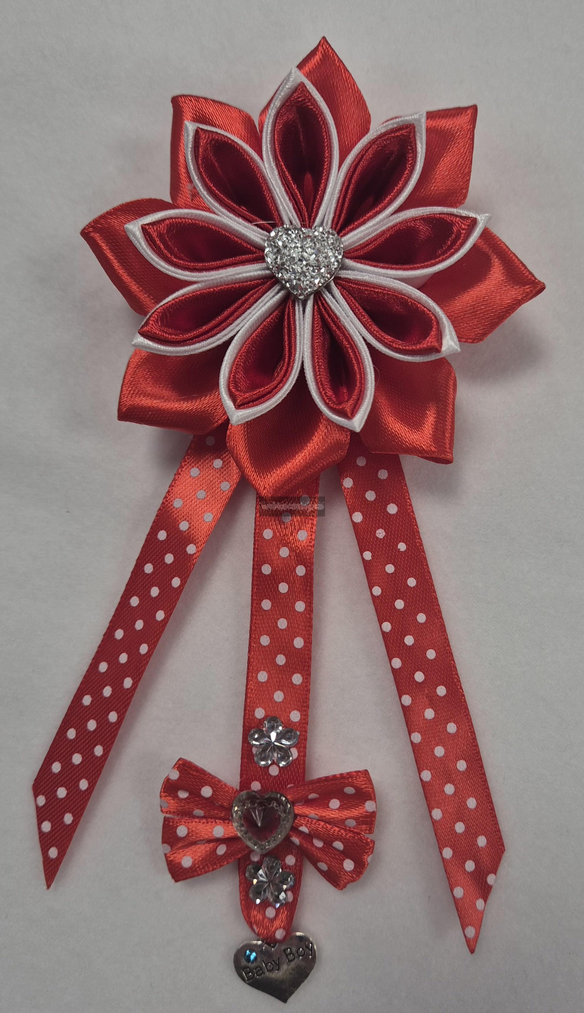 Krásná červená stužka na ozdobném zavíracím špendlíku. Pro ozdobu, pro potěšení, pro jistotu;-)