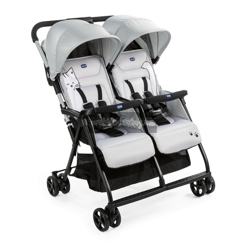 CHICCO Kočárek dvojčatový sportovní Ohlala Twin Silver Cat