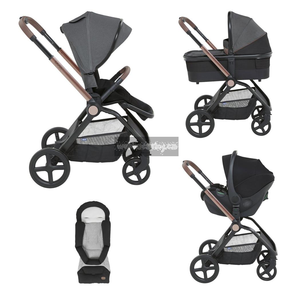 CHICCO Kočárek kombinovaný 3v1 Mysa Black Satin