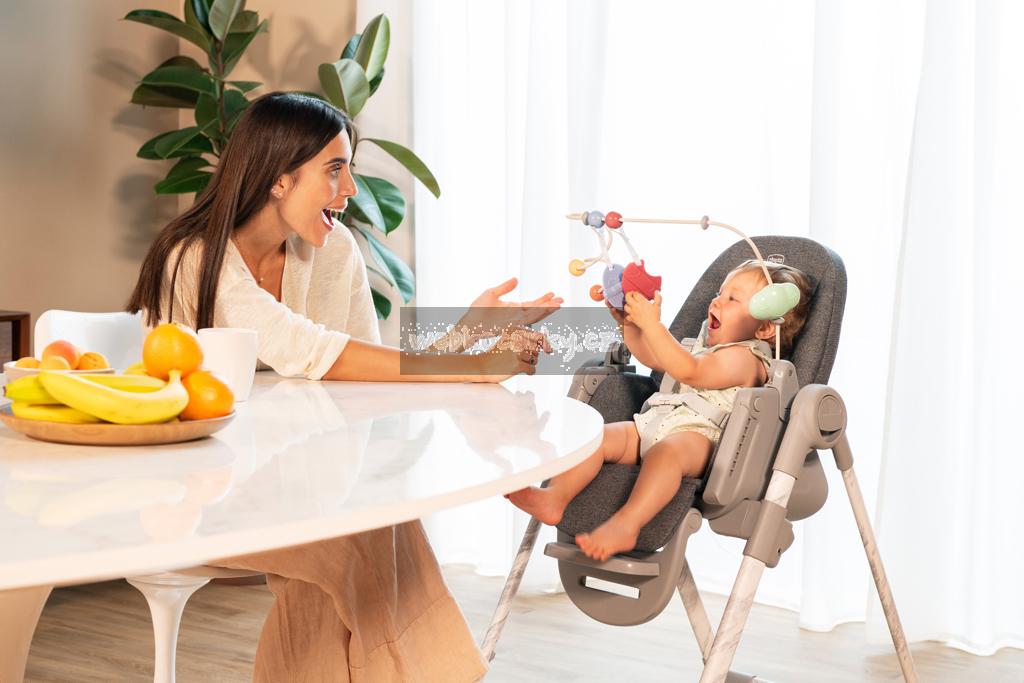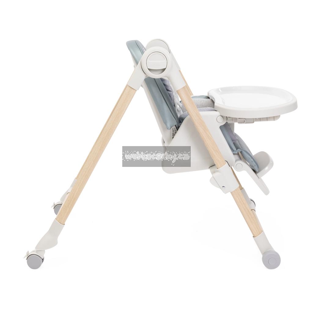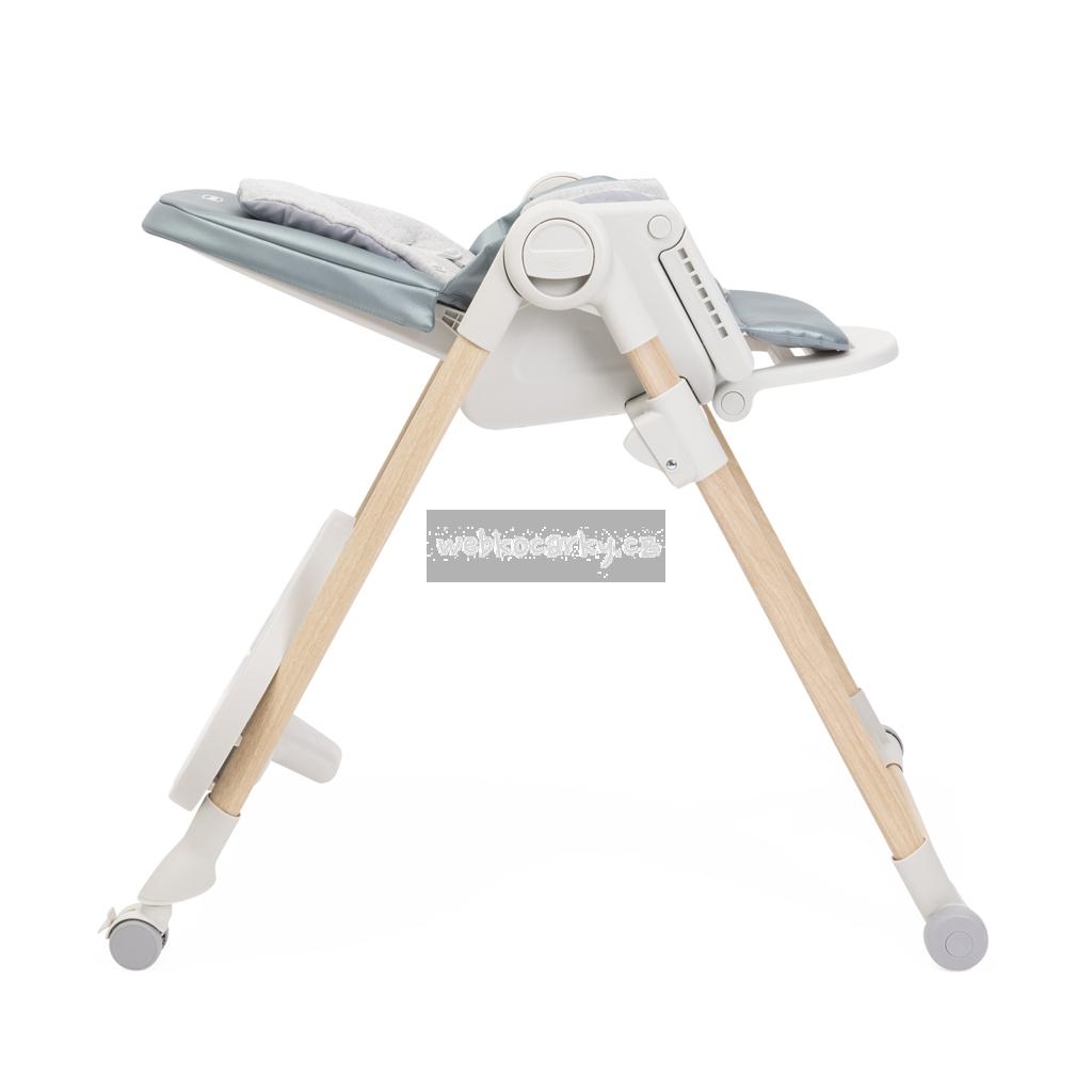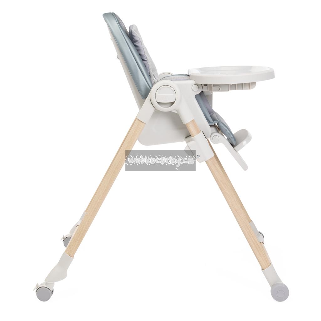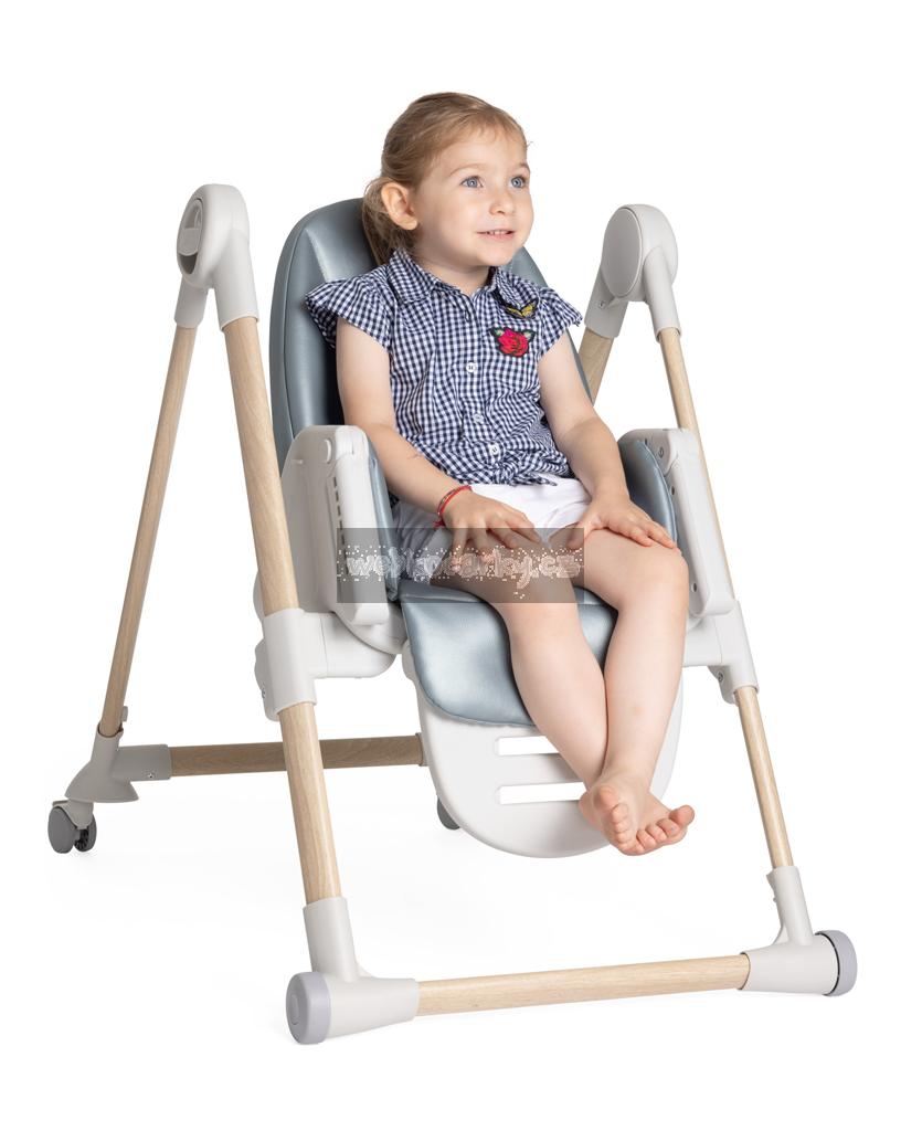 Jídelní židle lze výškově nastavit do 9 různých pozic a přizpůsobí se tak výšce, kterou aktuálně potřebujete. Má 4 kolečka díky kterým umíte židli prakticky přesouvat. Opěrka zad lze nastavit do úplného lehu. Opěrka nožiček je rovněž nastavitelná pro naprostý komfort dítěte.