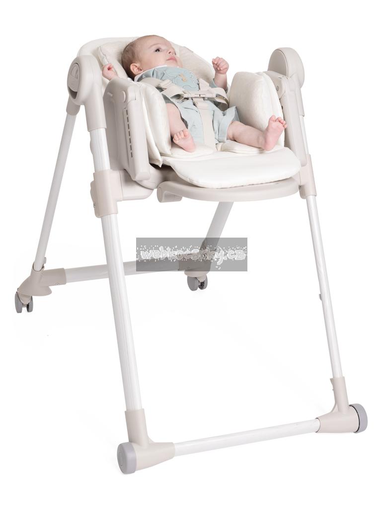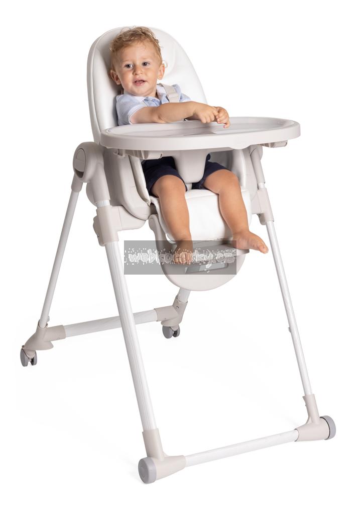 Jídelní židle lze výškově nastavit do 9 různých pozic a přizpůsobí se tak výšce, kterou aktuálně potřebujete. Má 4 kolečka díky kterým umíte židli prakticky přesouvat. Opěrka zad lze nastavit do úplného lehu. Opěrka nožiček je rovněž nastavitelná pro naprostý komfort dítěte.