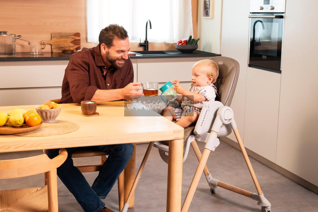- od 3 let až do 40 kg lze židli nastavit do pozice, ve které dítě může stolovat u jídelního stolu. Stačí odebrat tác, židli nastavit do potřebné výšky a přisunout ke stolu.