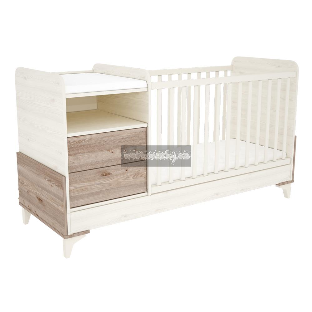 Chloe postýlka 2-zásuvková s přebalovacím pultem krémová