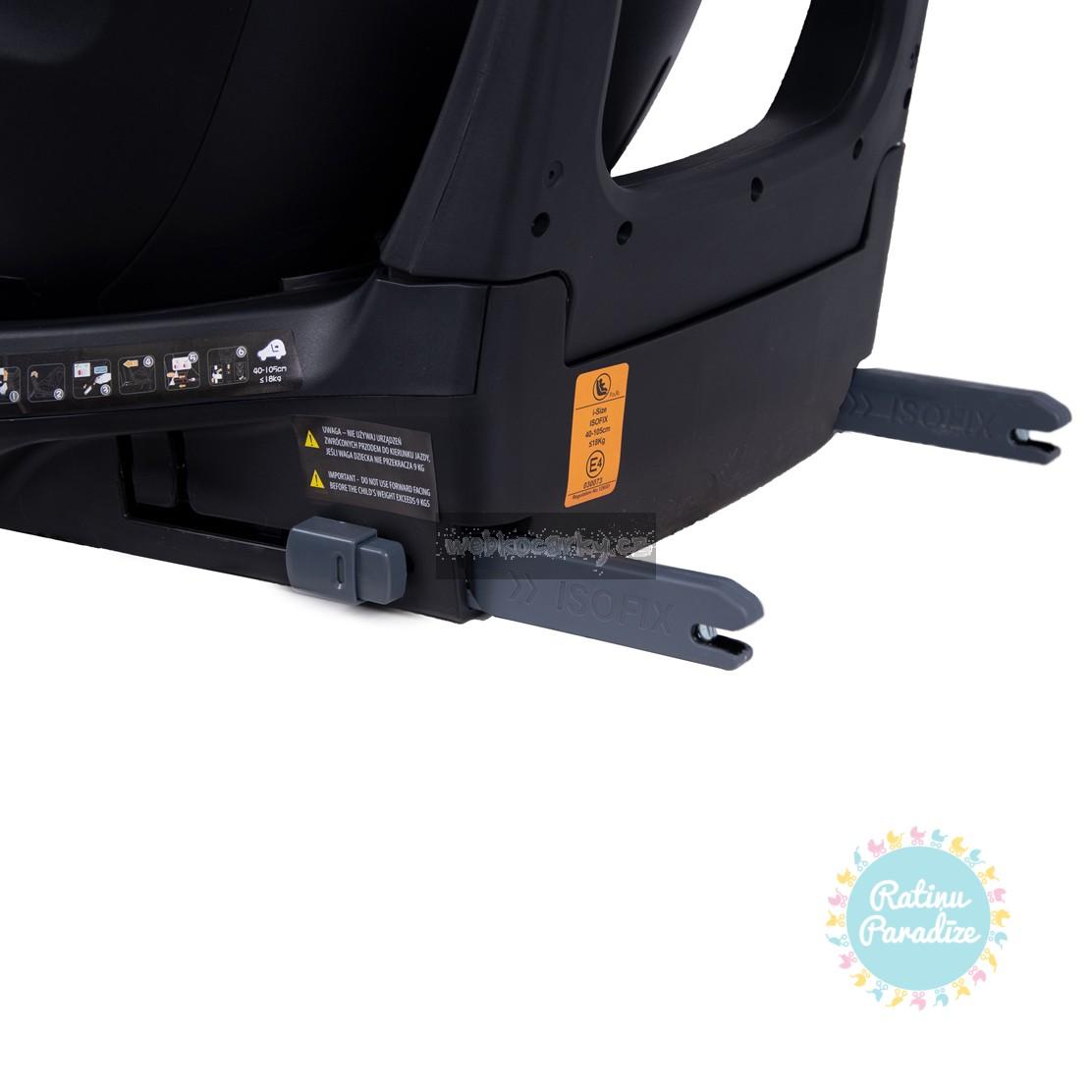 Protirotační systém zabraňuje posunutí autosedačky při nárazu. Lze jej nastavit v rozsahu dopředu-dozadu až o 8 stupňů, což umožňuje přesně přizpůsobit systém opěradlu autosedačky. Je také důležité, že poskytuje dítěti o 10 % více prostoru pro nohy.