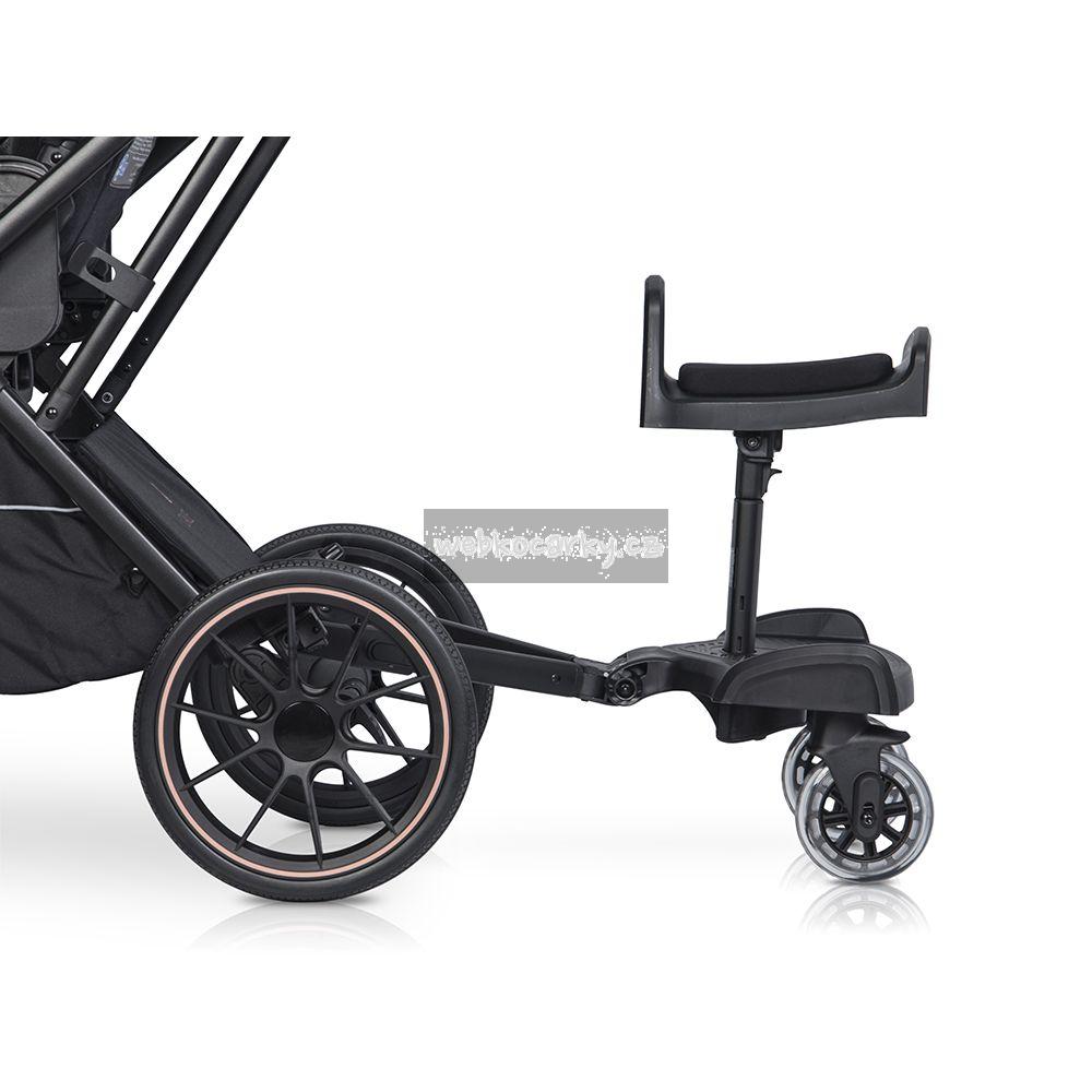 Lze použít jako plošinu pro stojící dítě nebo jako plošinu se sedátkem, která umožňuje přepravu dítěte v sedě. Sedačka má pohodlnou funkci naklápění dopředu, takže ji není nutné úplně sundávat, pokud se chce vaše dítě postavit a pokračovat v jízdě ve stoje. Sedačka má pohodlnou měkkou podložku vyplněnou speciální pěnou zajišťující pohodlí pro sedící dítě.