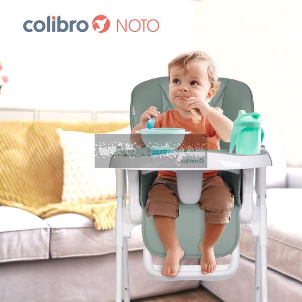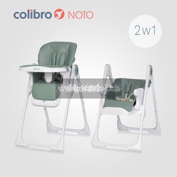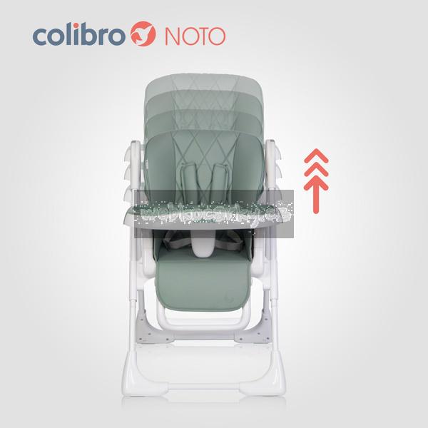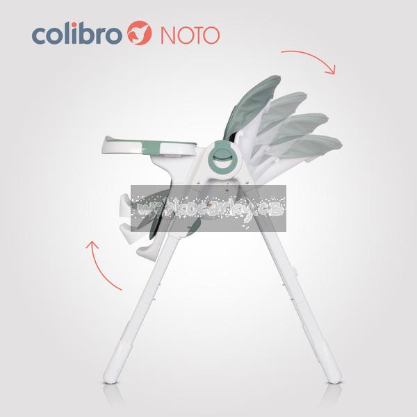 COLIBRO NOTO má až 7-stupňové nastavení výšky, takže jej lze použít jako vysokou židli na krmení připevněnou ke stolu rodičů (s podnosem i bez) nebo jako nízkou židličku pro starší dítě.