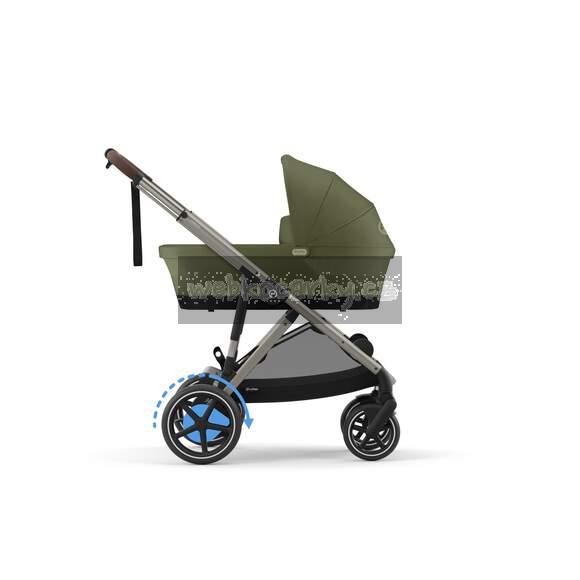 Funkce automatického houpání pohybuje kočárkem e-Gazelle S rytmicky dopředu a dozadu, čímž jemně houpe vaše děťátko, takže je před usnutím klidnější.